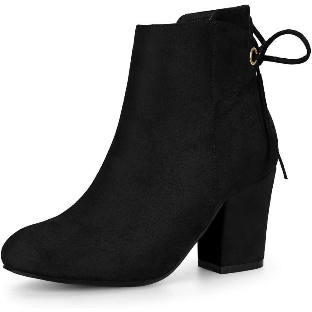 Allegra K Women’s Round Toe Block Heel Zipper Lace Up Ankle Boots(Black)