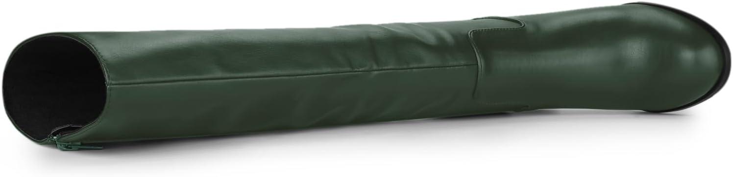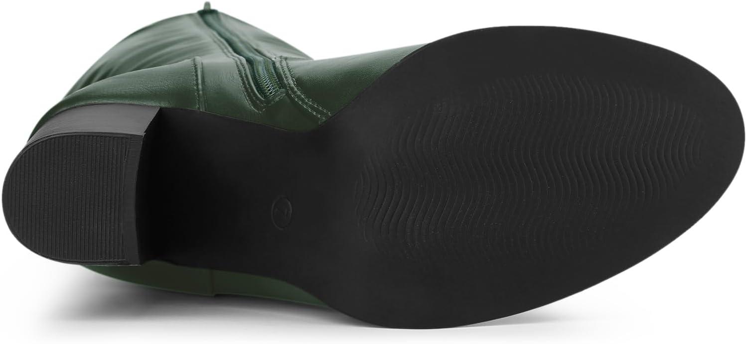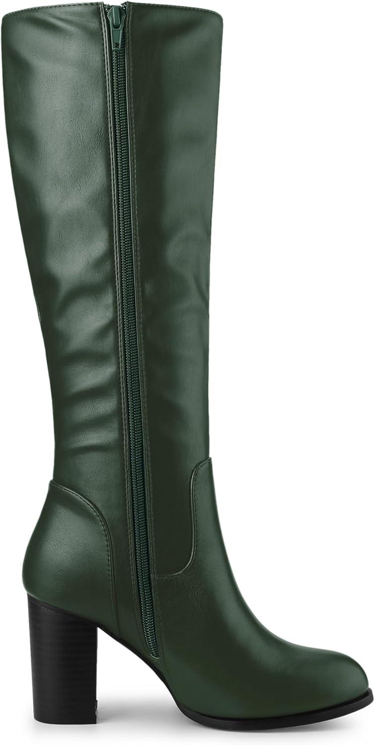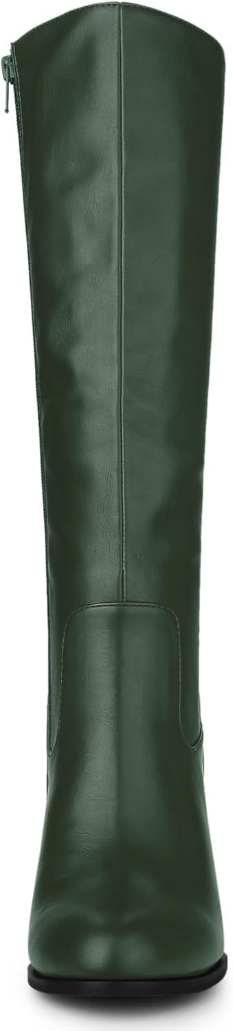 Allegra K Women’s Round Toe Block Heeled Knee High Boots(Dark Green)