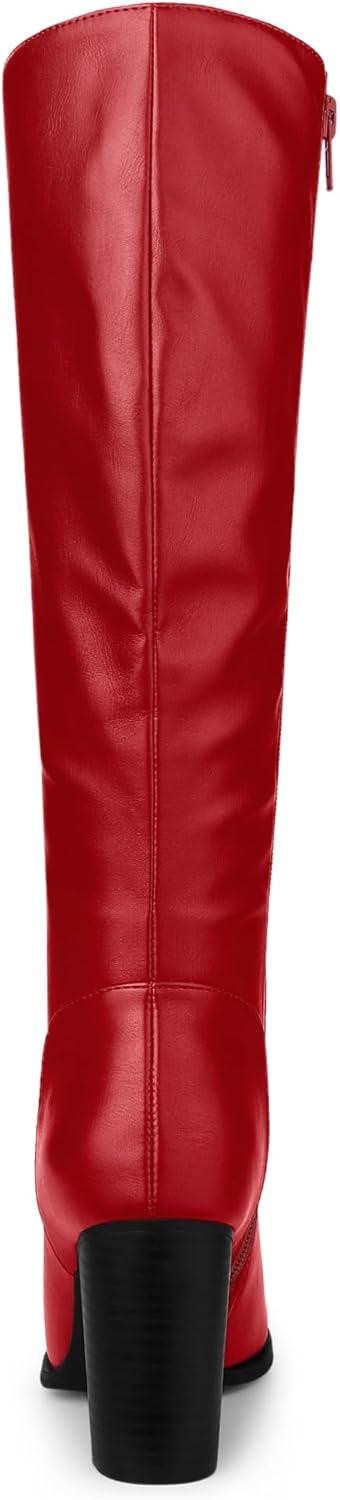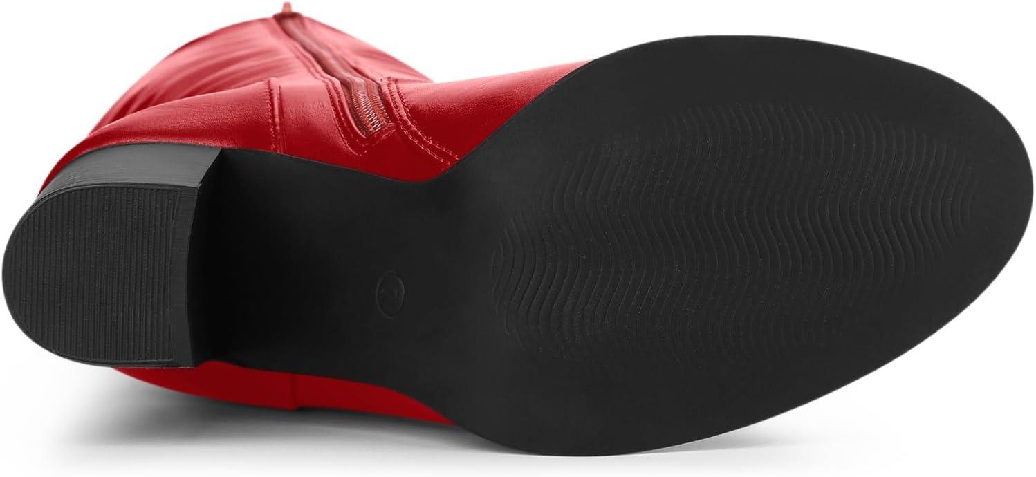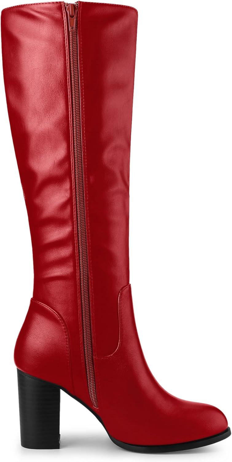 Allegra K Women’s Round Toe Block Heeled Knee High Boots(Red)