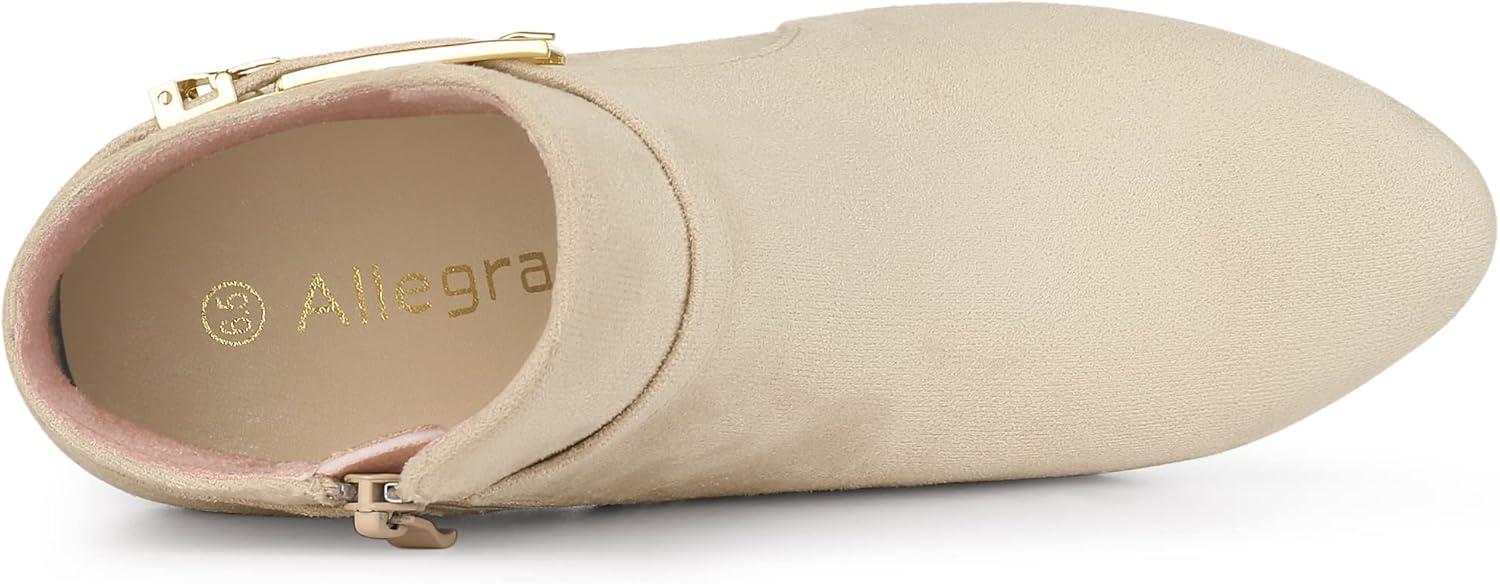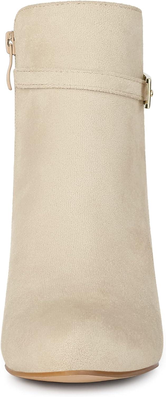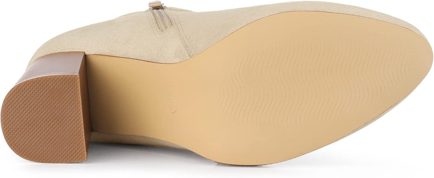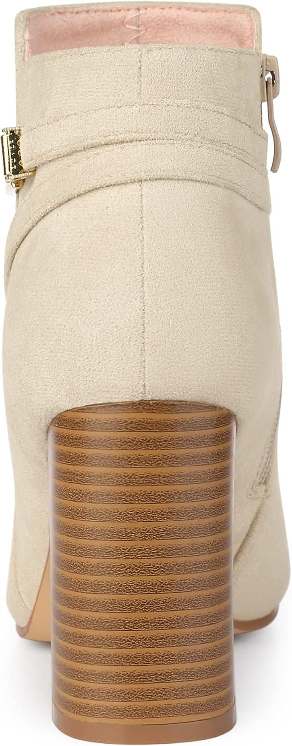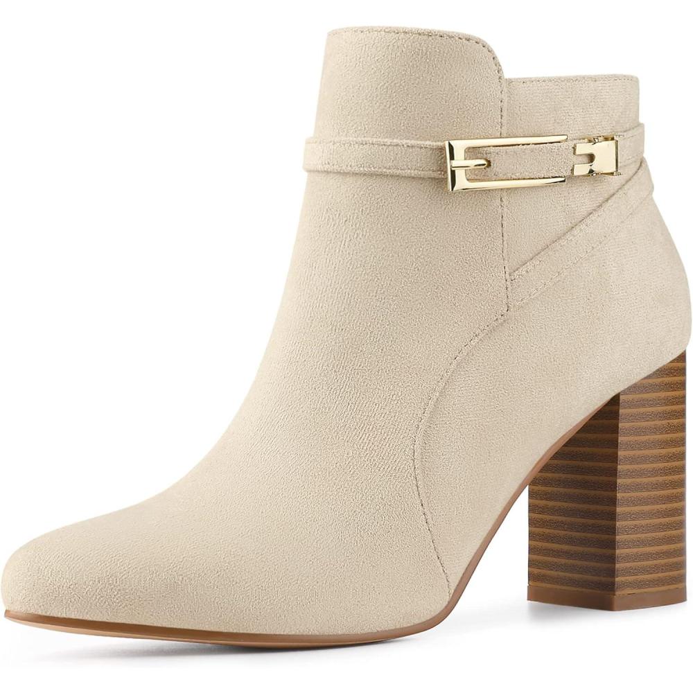 Allegra K Women’s Round Toe Buckle Chunky Heels Ankle Boots(Beige)