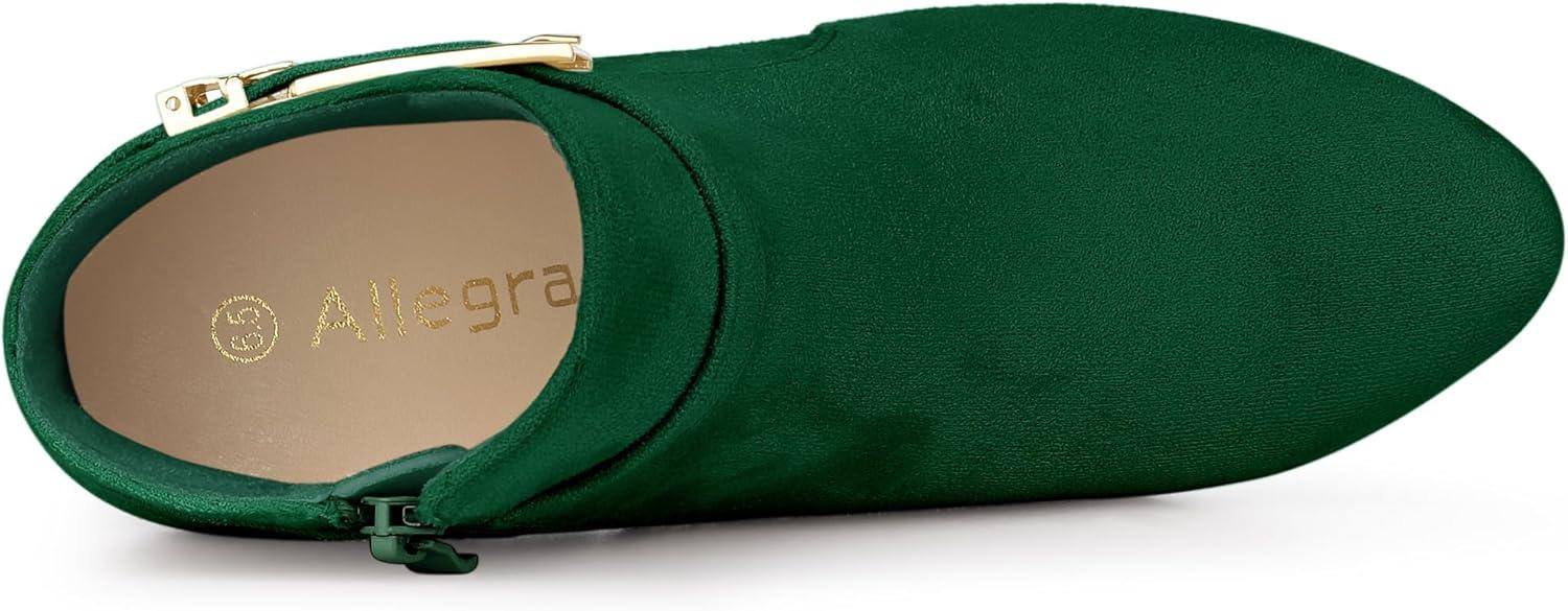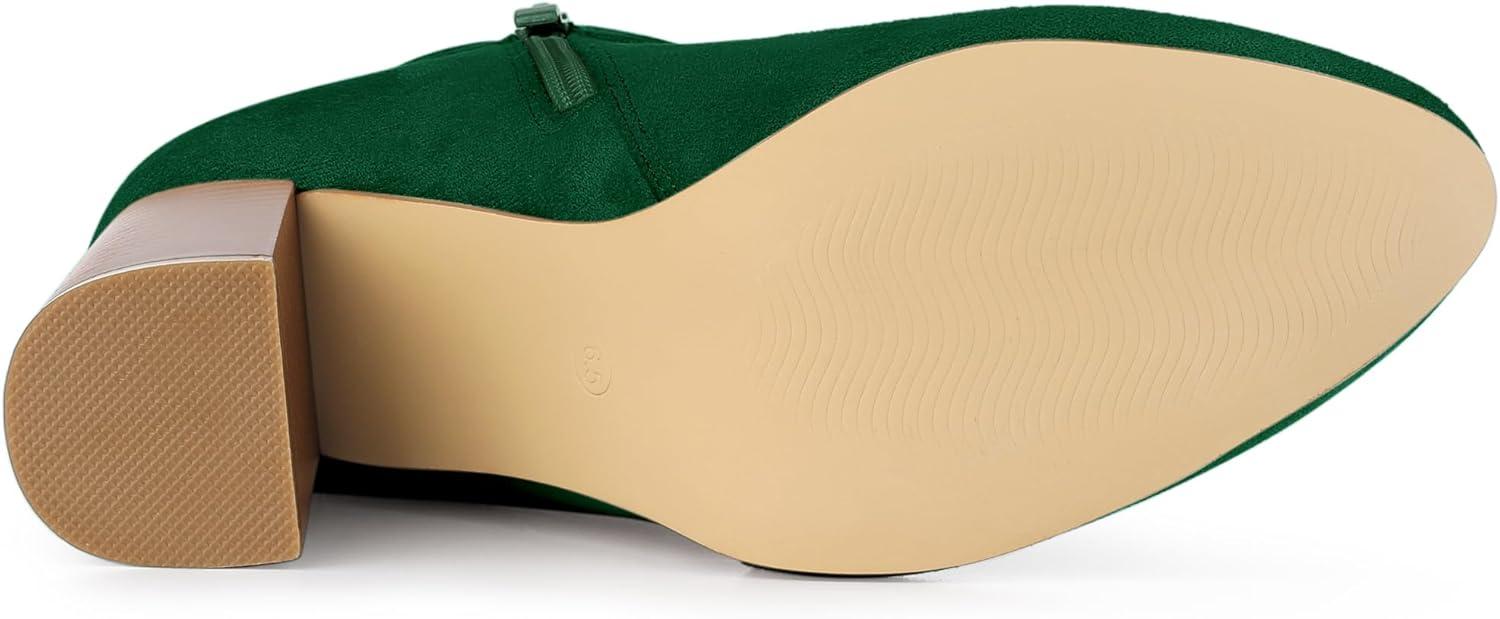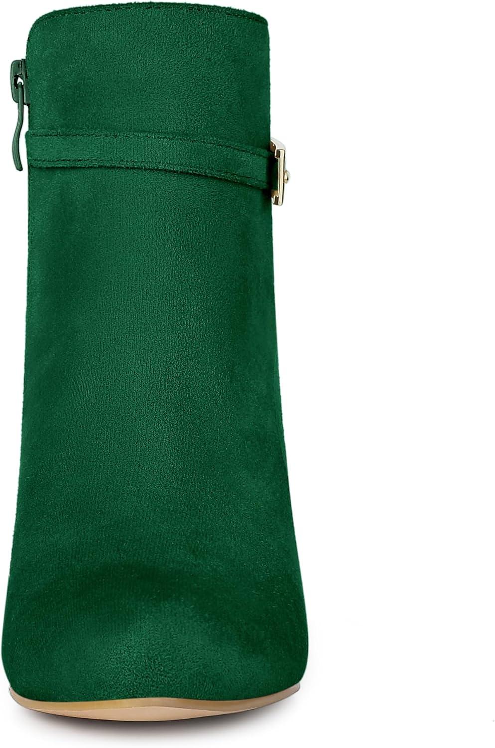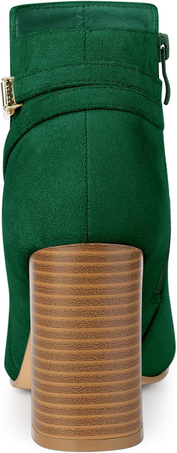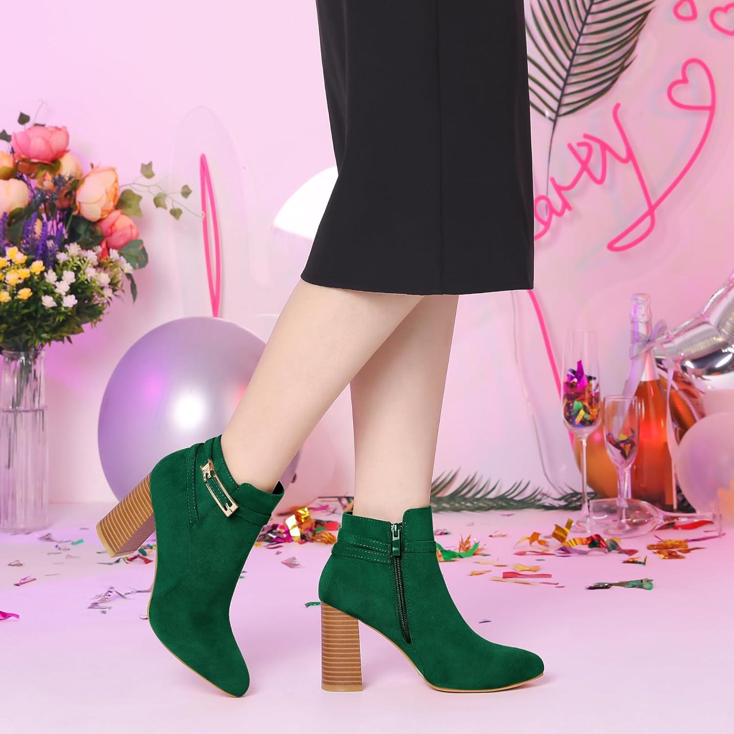 Allegra K Women’s Round Toe Buckle Chunky Heels Ankle Boots(Green)