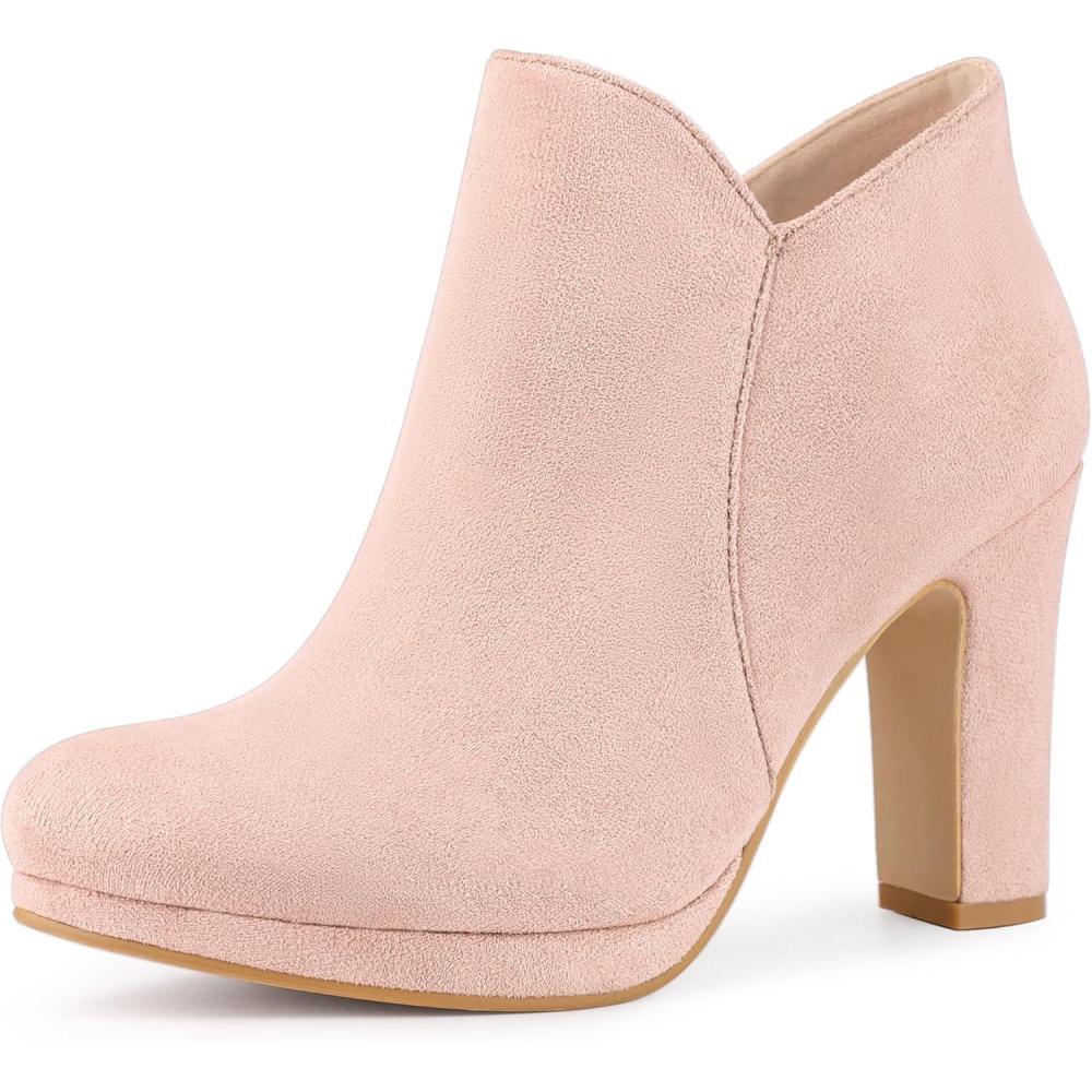 Allegra K Women’s Round Toe Chunky Heeled Ankle Heel Boots(Pink)