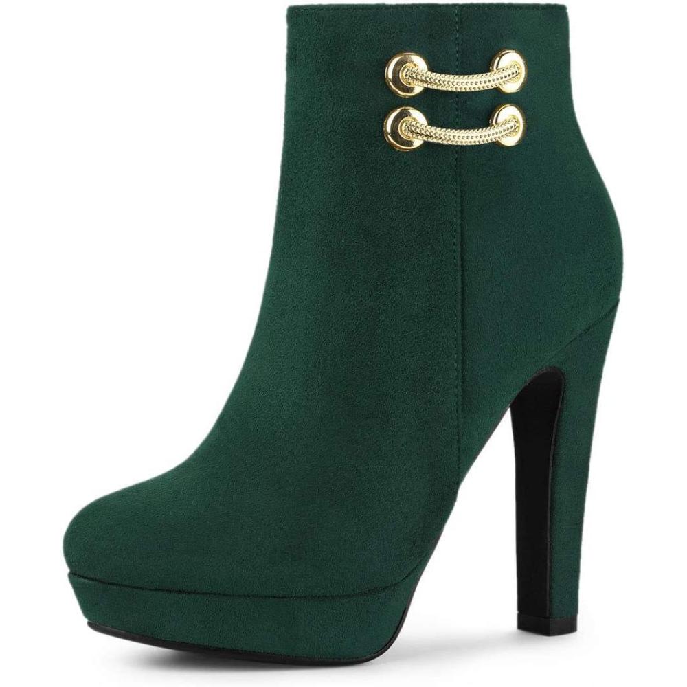Allegra K Women’s Round Toe Chunky High Heel Platform Ankle Boots(Green)