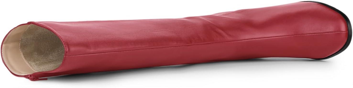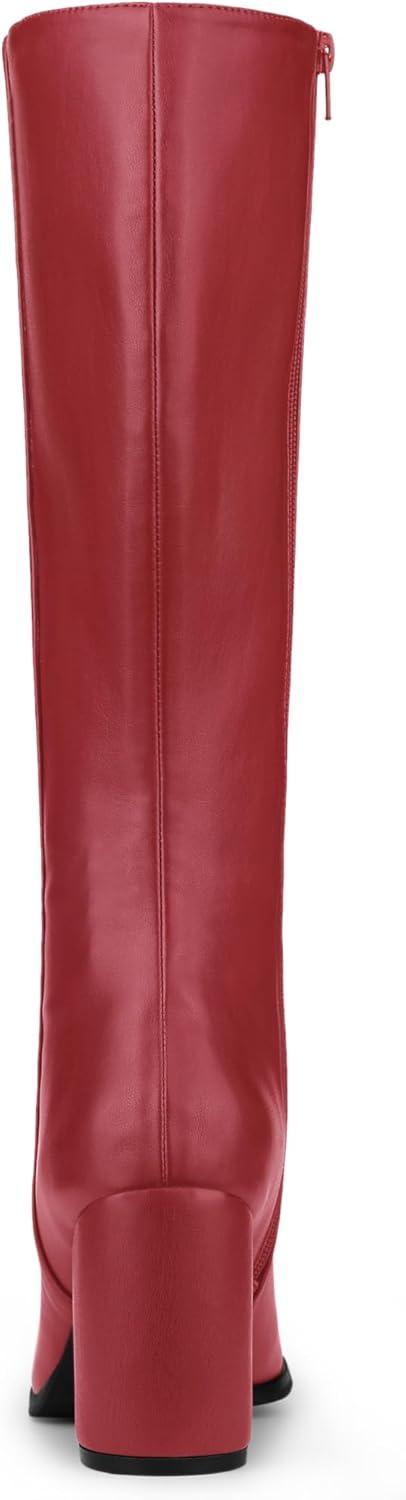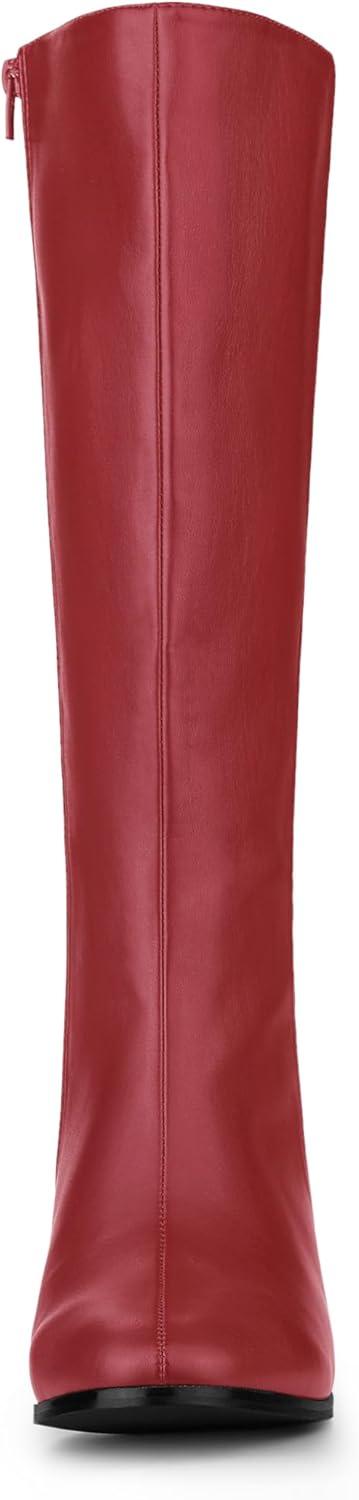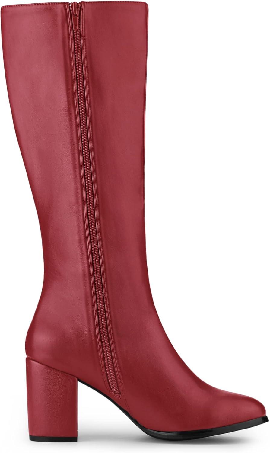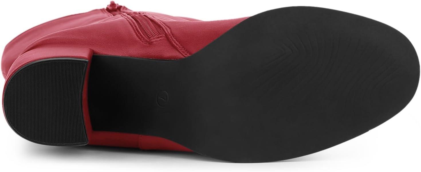 Allegra K Women’s Round Toe Zip Block Heels Knee High Boots(Red)
