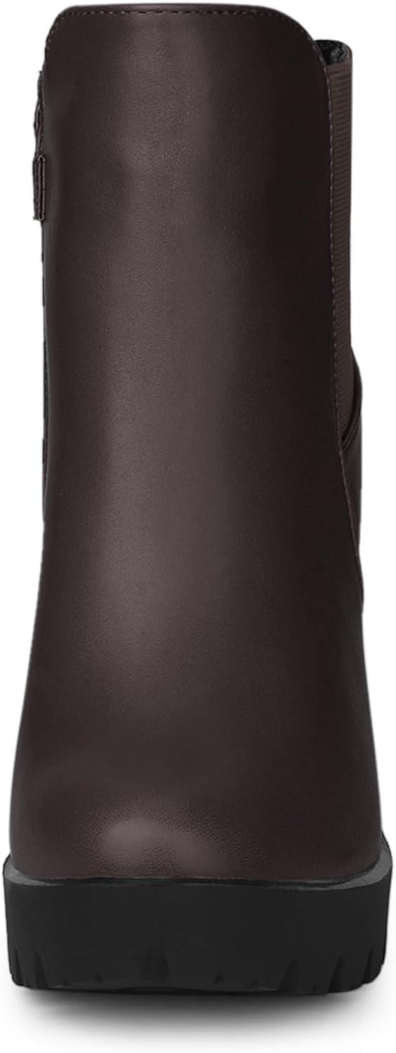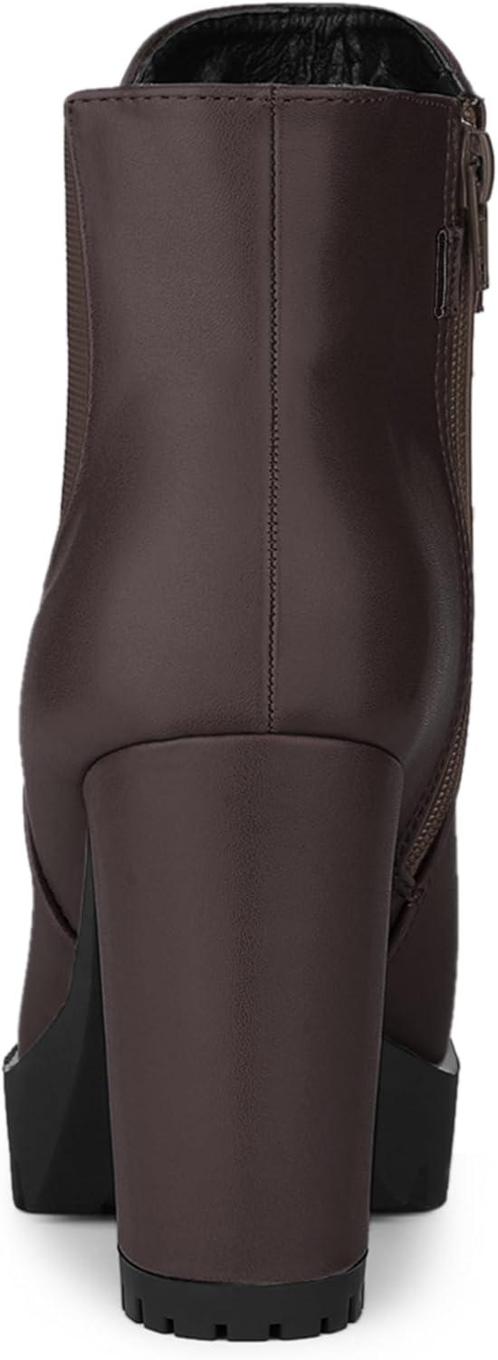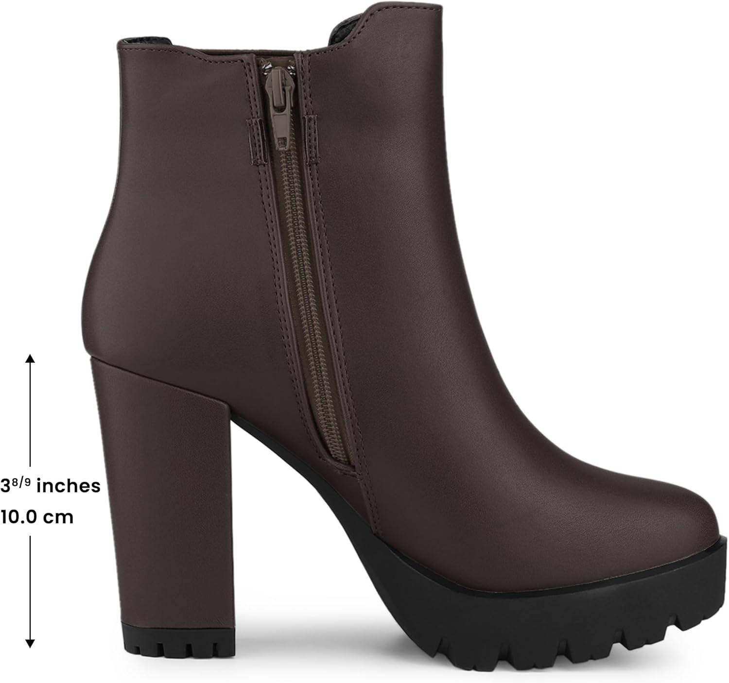 Allegra K Women's Round Toe Zipper Block Heel Platform Ankle Boots(Coffee)