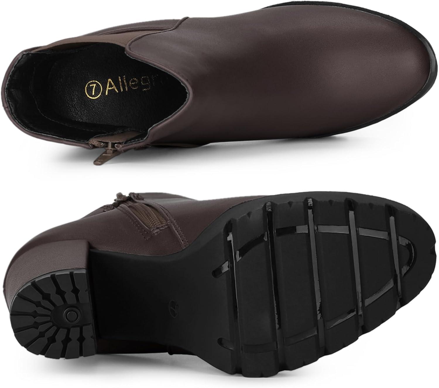 Allegra K Women’s Round Toe Zipper Block Heel Platform Ankle Boots(Coffee)