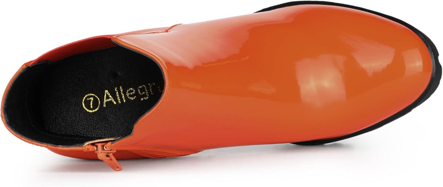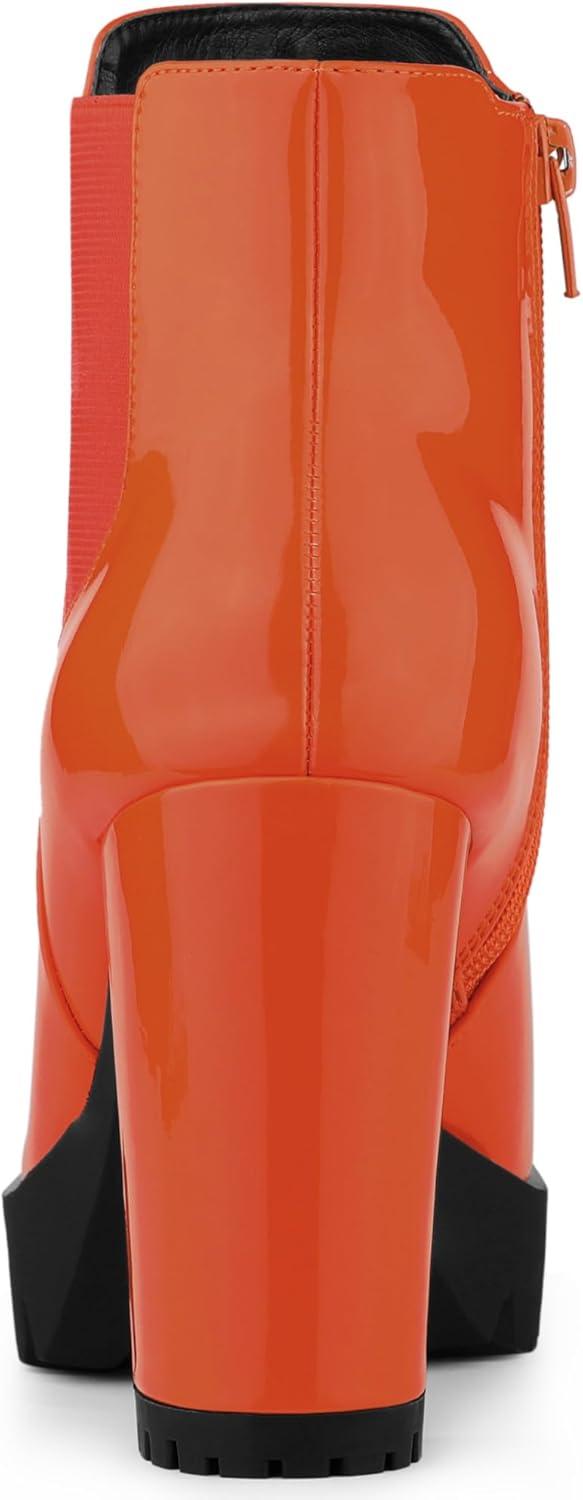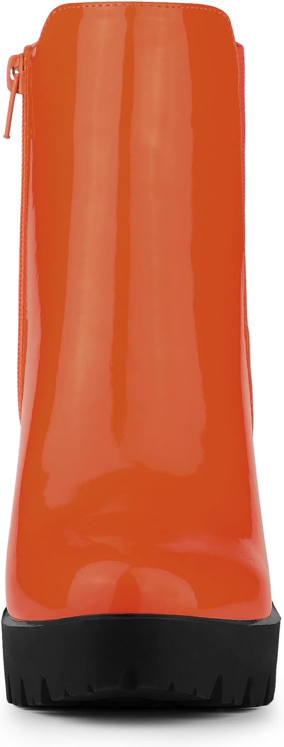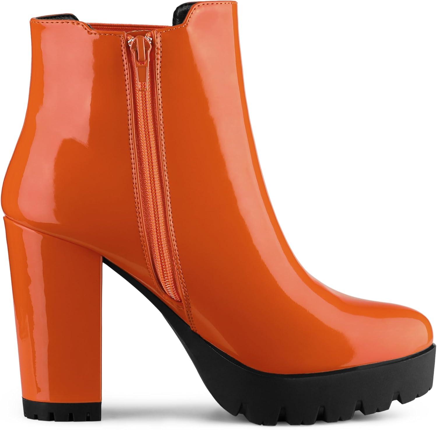 Allegra K Women’s Round Toe Zipper Block Heel Platform Ankle Boots(Orange)