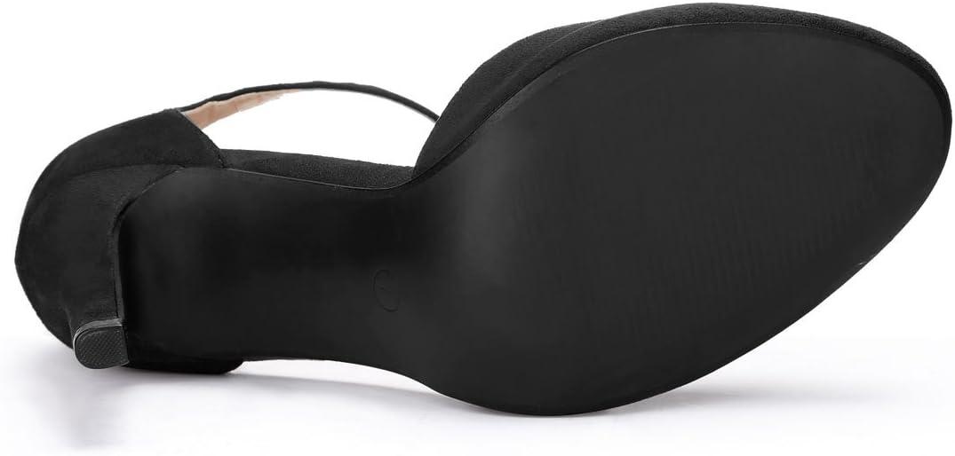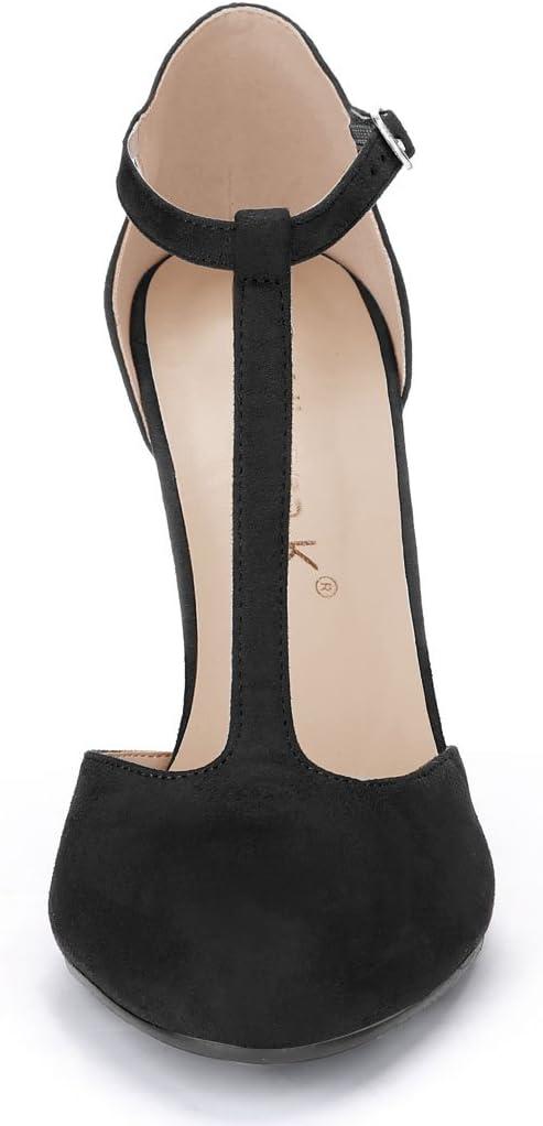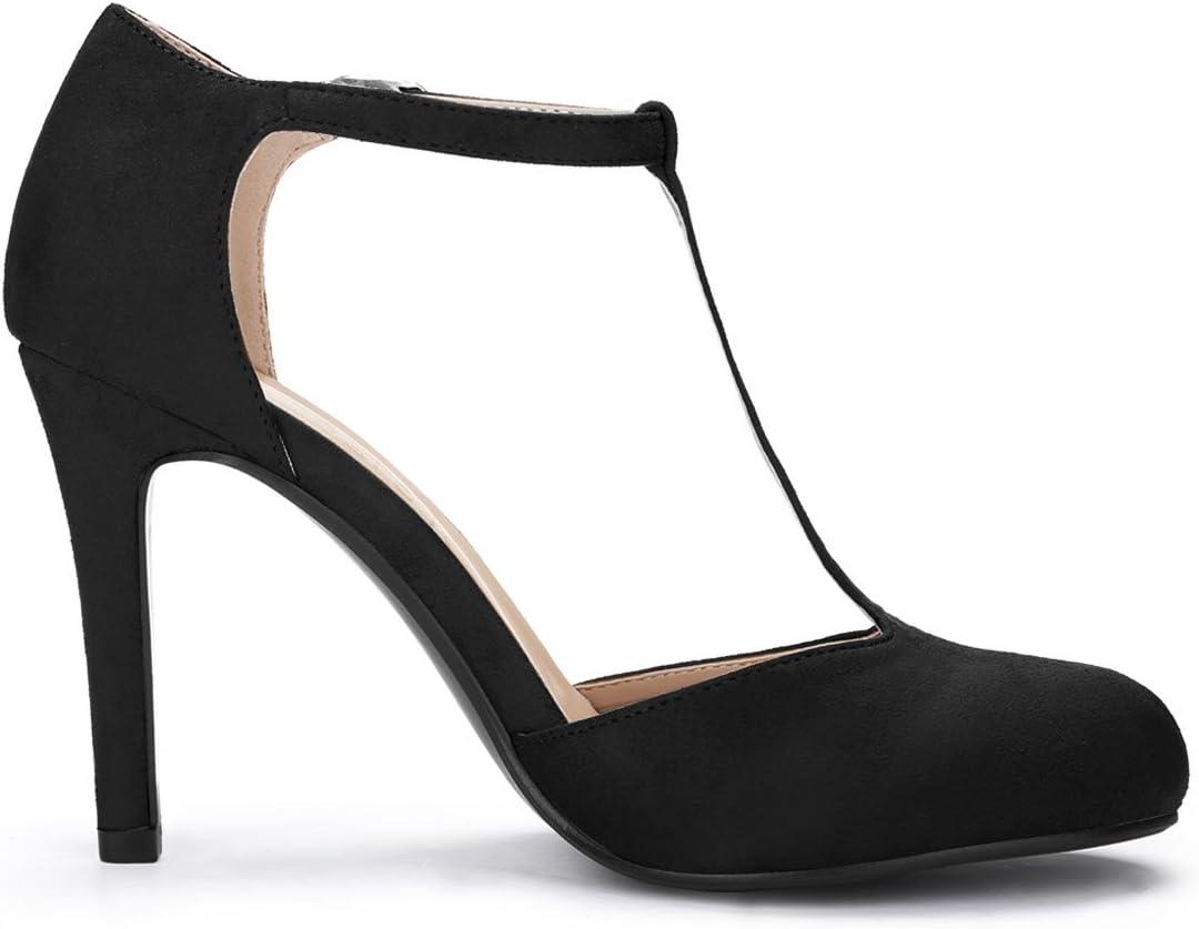Allegra K Women’s Rounded Toe Stiletto Heel T-Strap Dress Pumps(Black)
