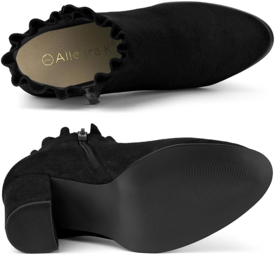 Allegra K Women’s Ruffle Block Heel Ankle Boots(Black)