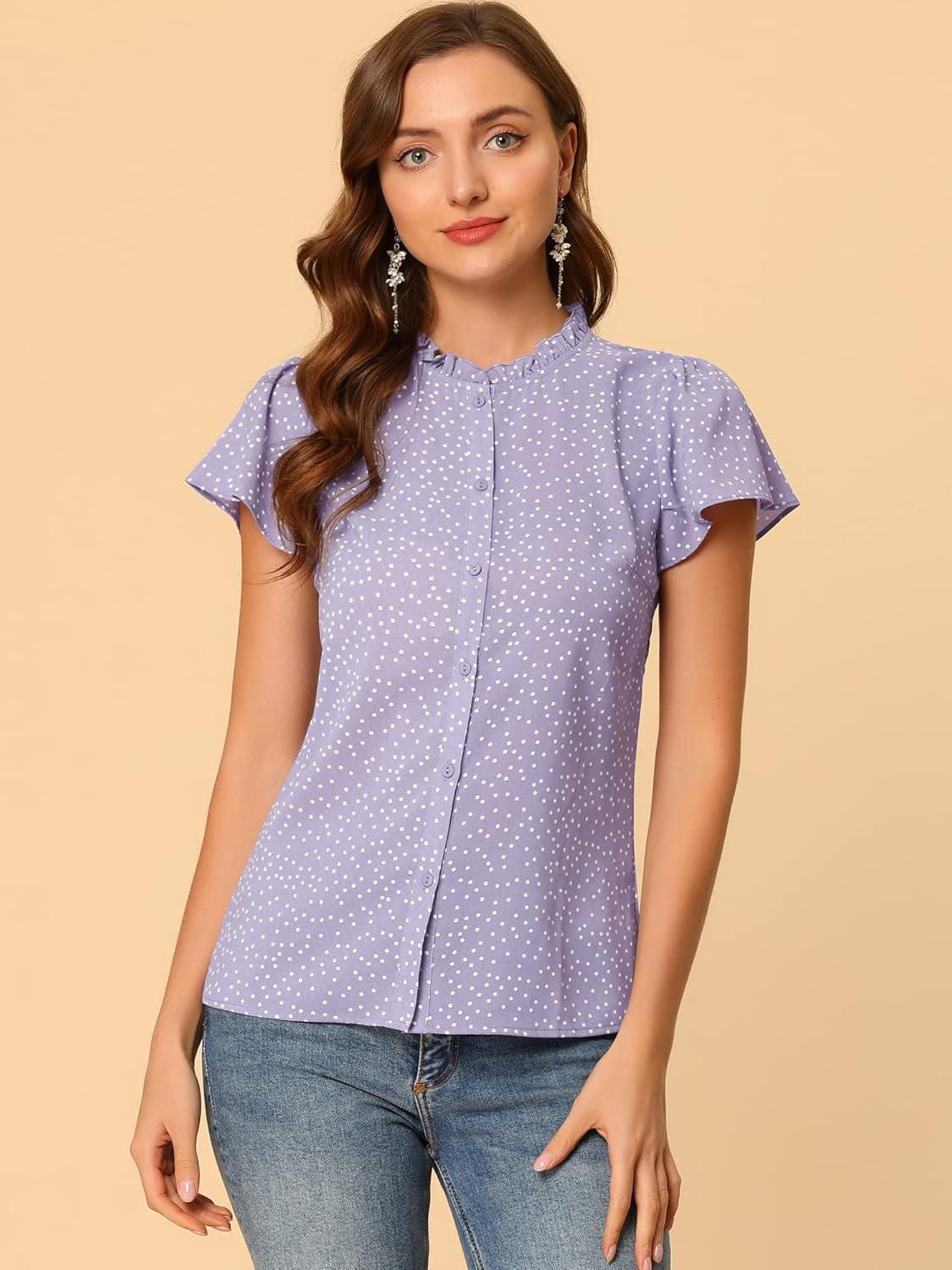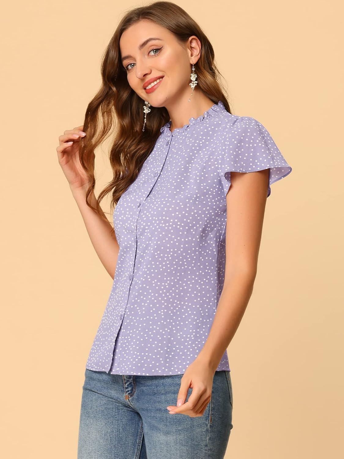 Get your hands on our exclusive Allegra K Women’s Ruffle Summer Dots Print 1950s Retro Short Sleeve Button Down Blouse Top(Purple) collection, now at a discounted price.