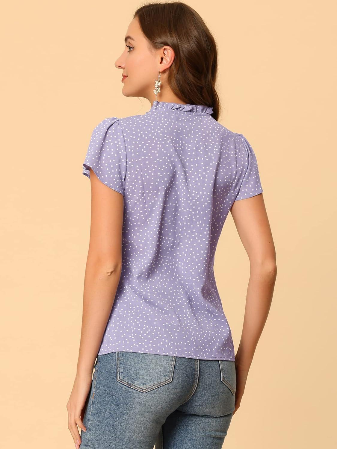 Allegra K Women’s Ruffle Summer Dots Print 1950s Retro Short Sleeve Button Down Blouse Top(Purple)