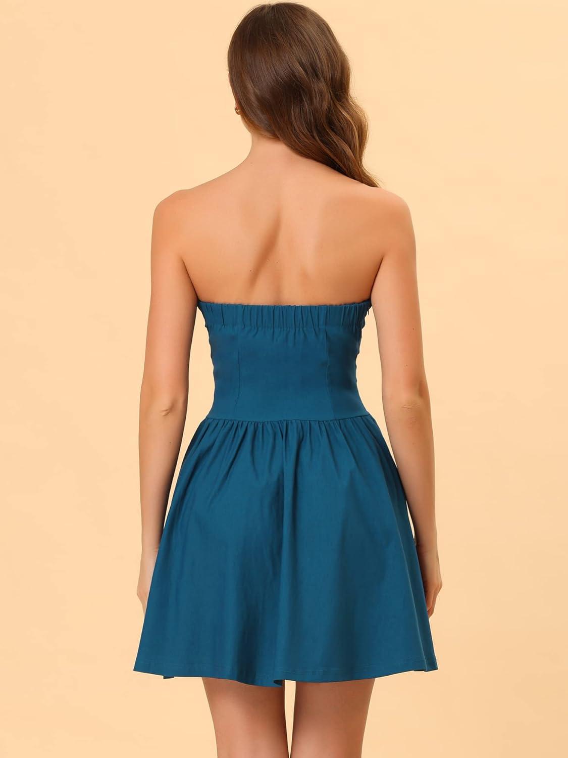 Allegra K Women’s Sexy Strapless Party Dress Sweetheart Neck Off Shoulder Sleeveless Mini Dress(Blue)