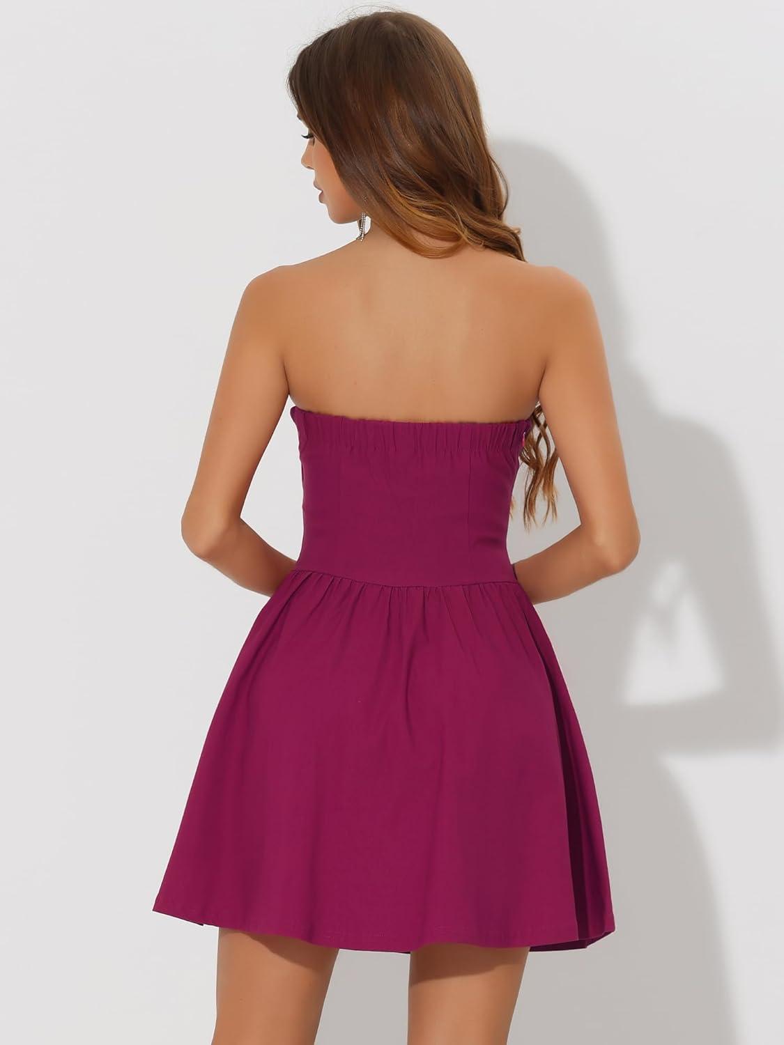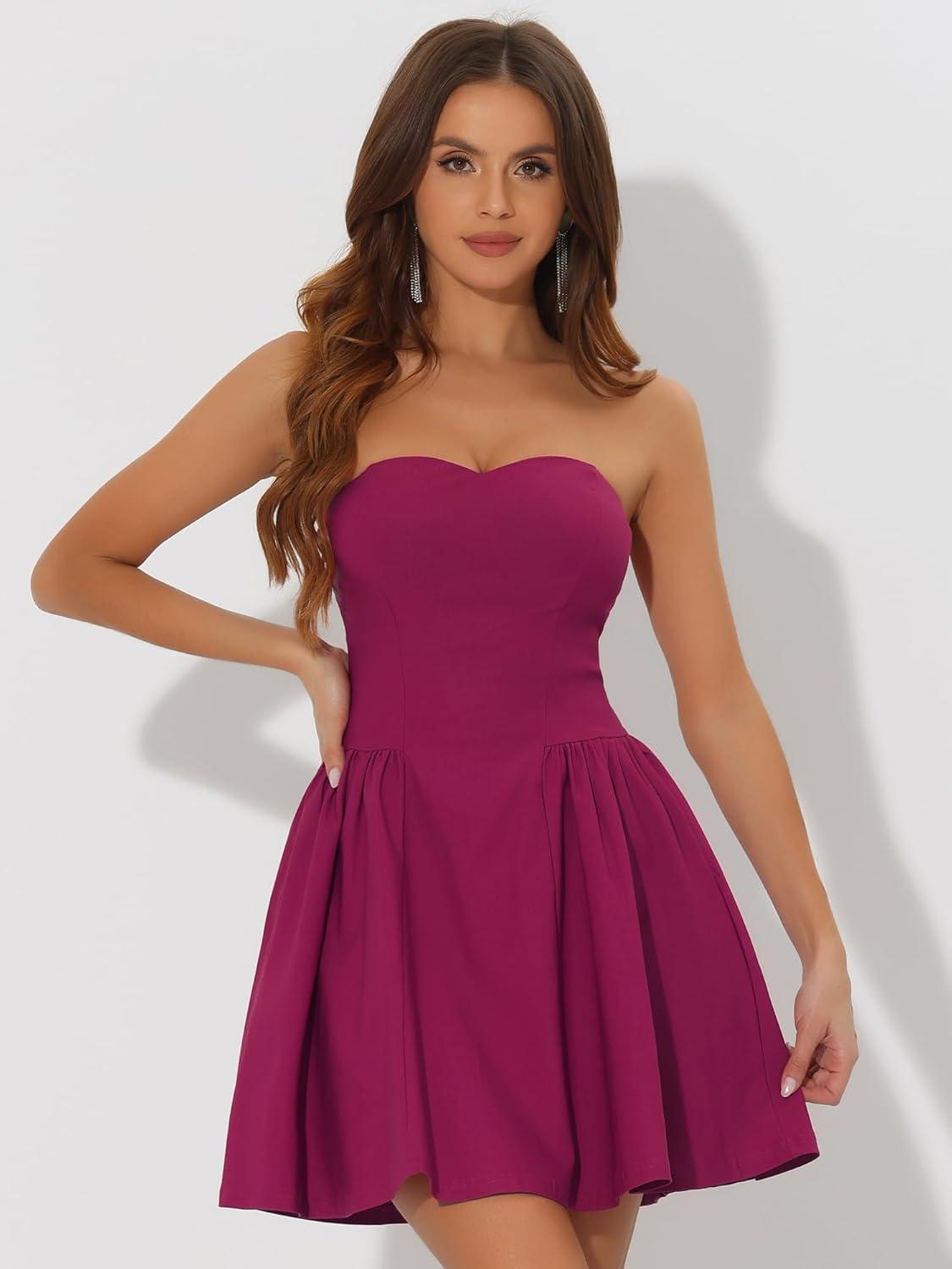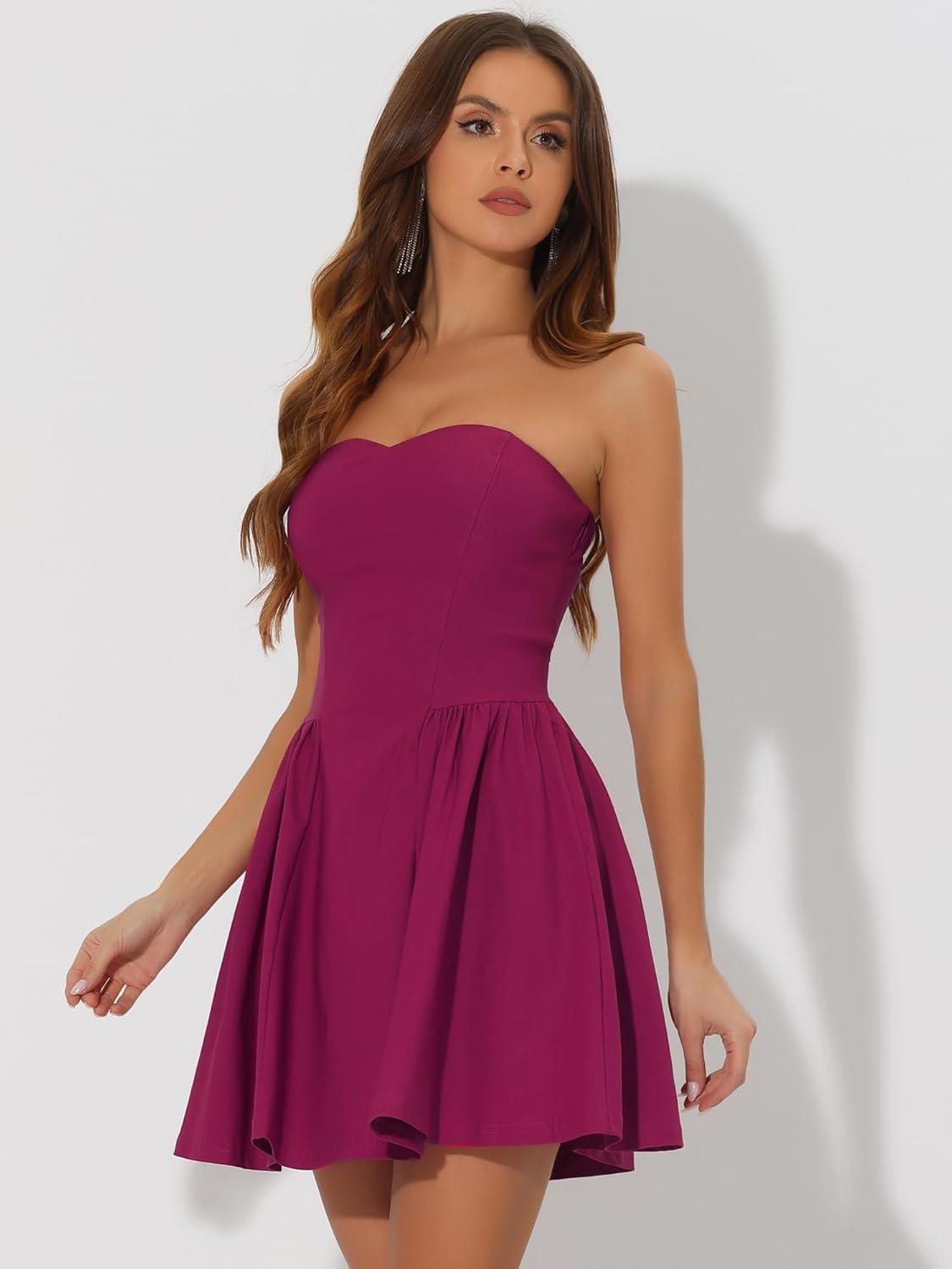 Allegra K Women’s Sexy Strapless Party Dress Sweetheart Neck Off Shoulder Sleeveless Mini Dress(Purple Red)