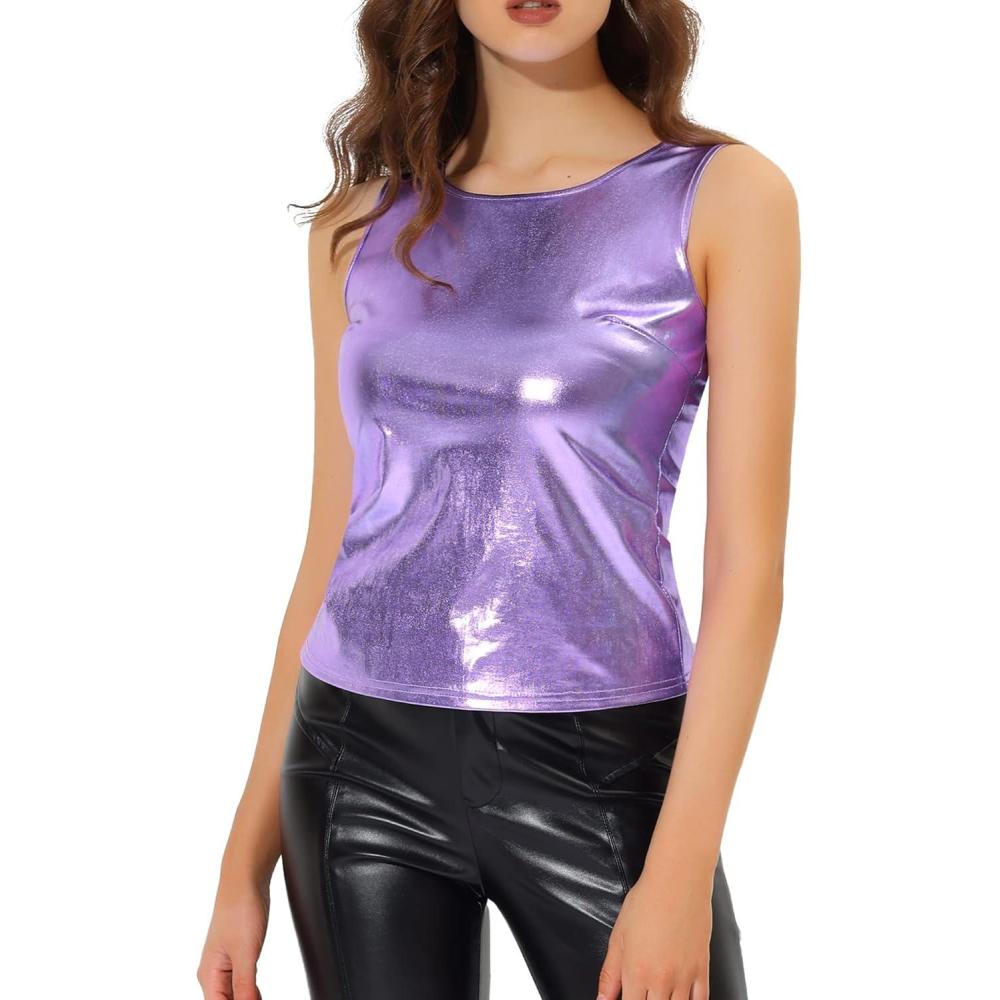 Allegra K Women’s Shiny Party Club Cami Sparkly Metallic Tank Top(Purple Tone)