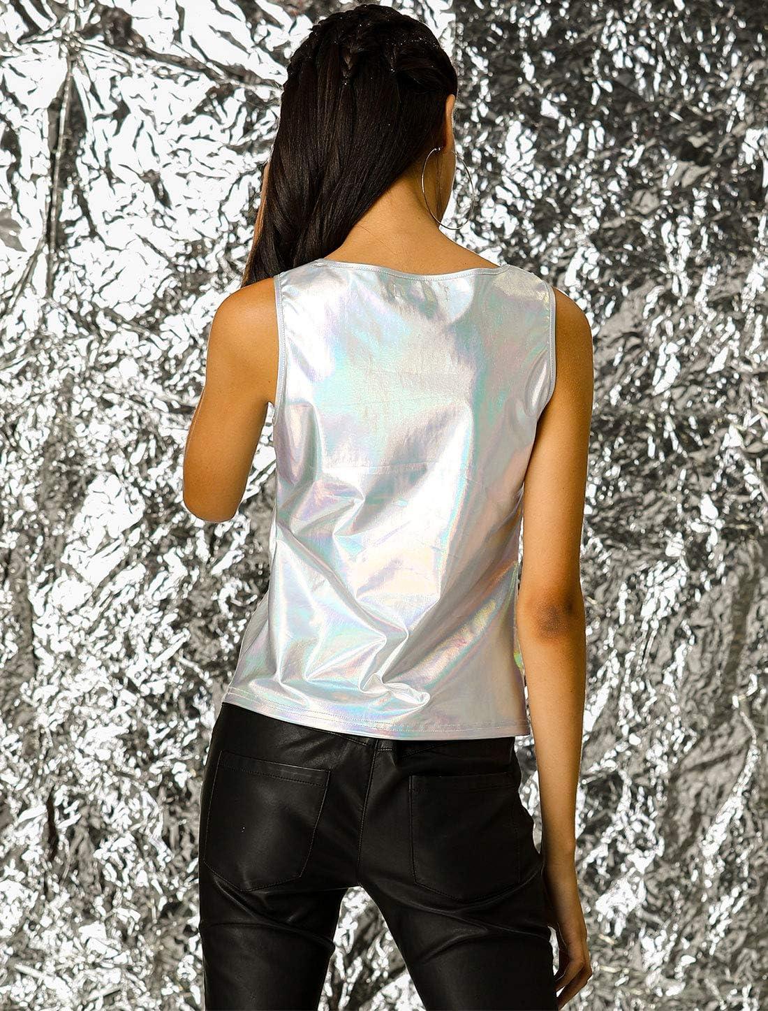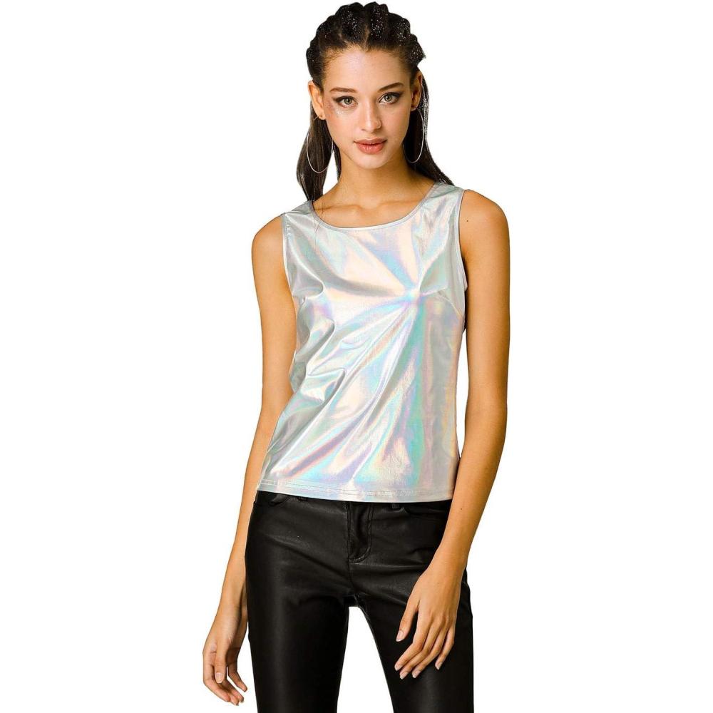 Allegra K Women’s Shiny Party Club Cami Sparkly Metallic Tank Top(Silver Pink)