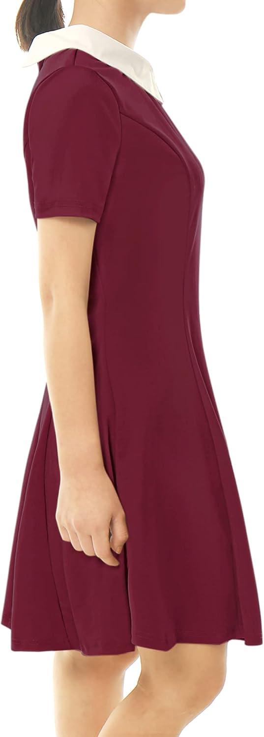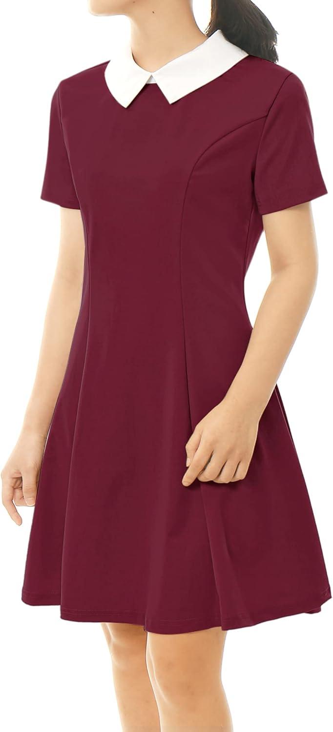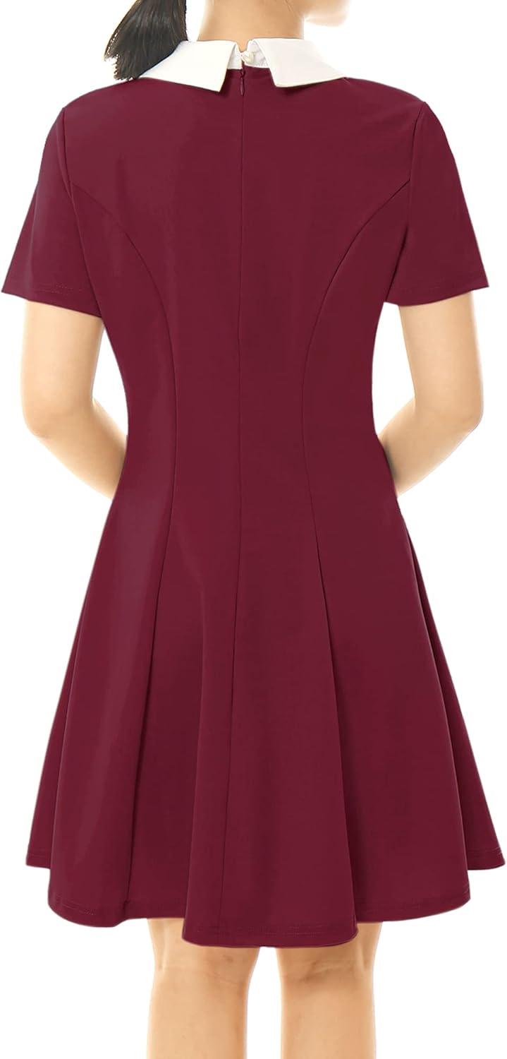 Allegra K Women's Short Sleeve Halloween Dresses Peter Pan Collar Casual Flare Skater Mini Vintage Dress 2025(Burgundy)