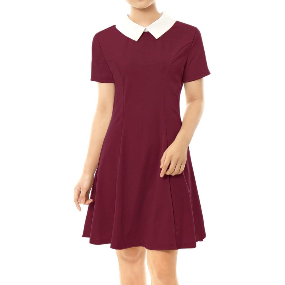 imageAllegra K Womens Short Sleeve Halloween Dresses Peter Pan Collar Casual Flare Skater Mini Vintage Dress 2025Burgundy