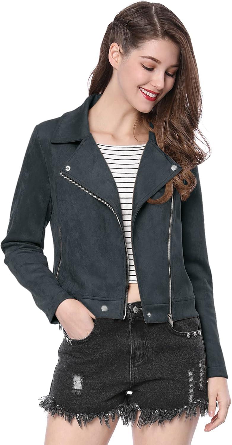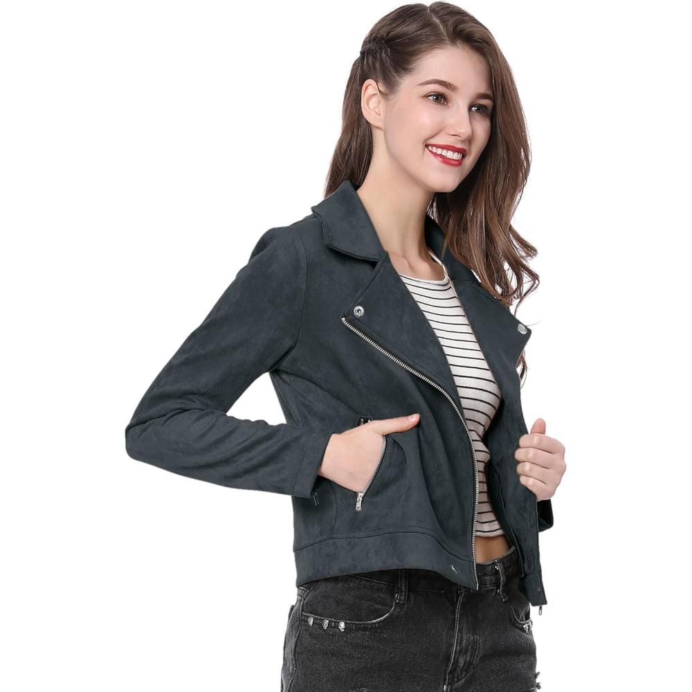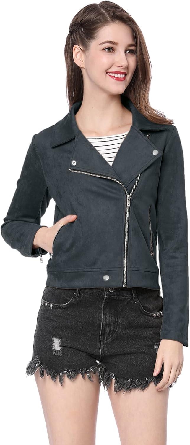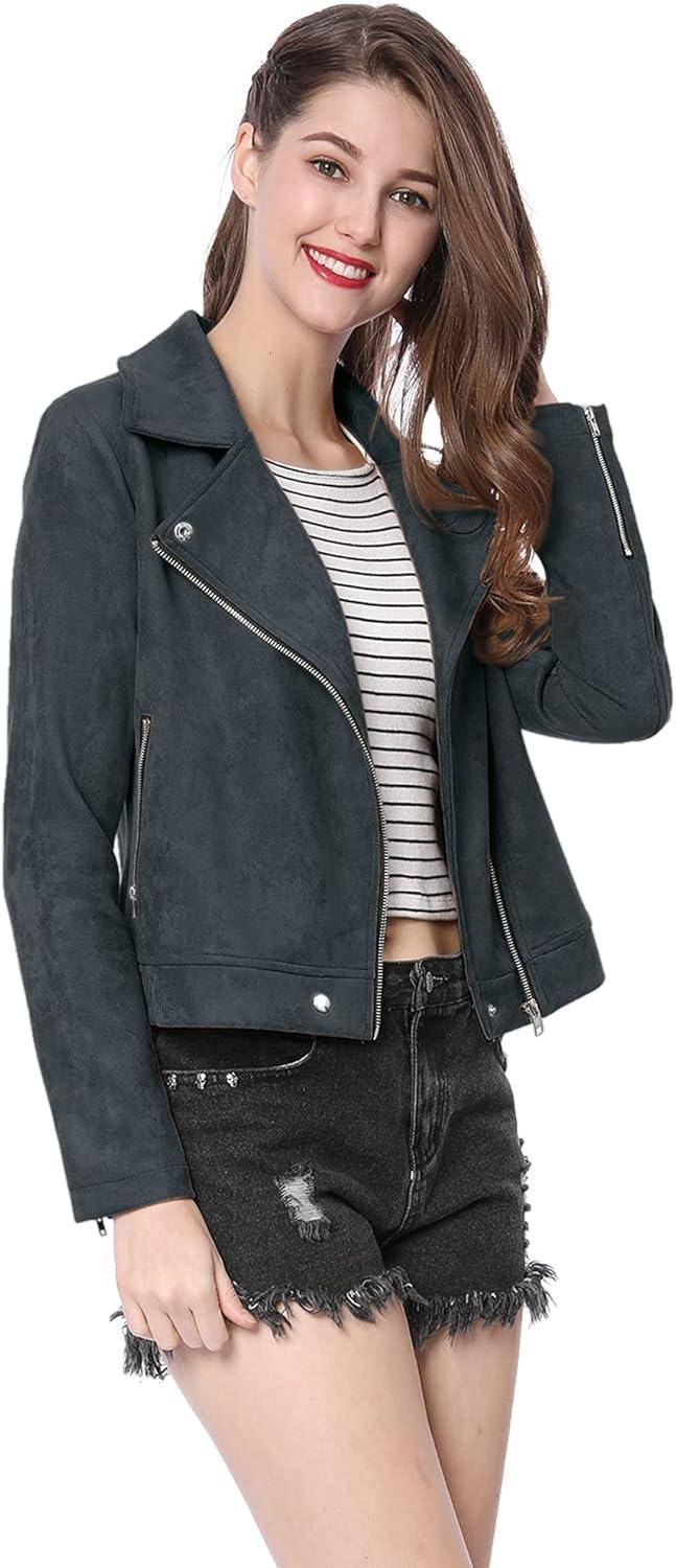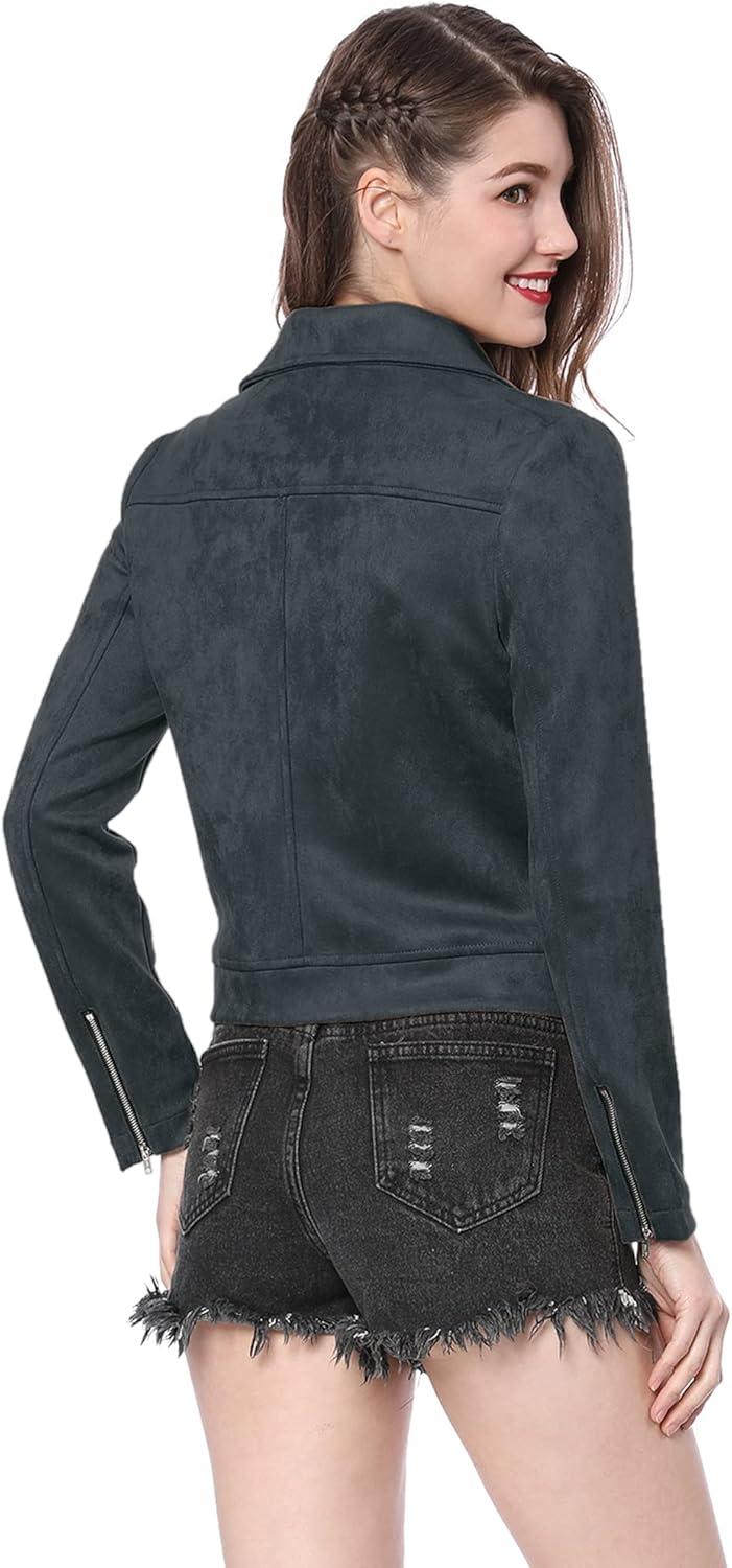 Allegra K Women's Short Soft Zip Up Faux Suede Biker Moto Jacket(Dark Blue)