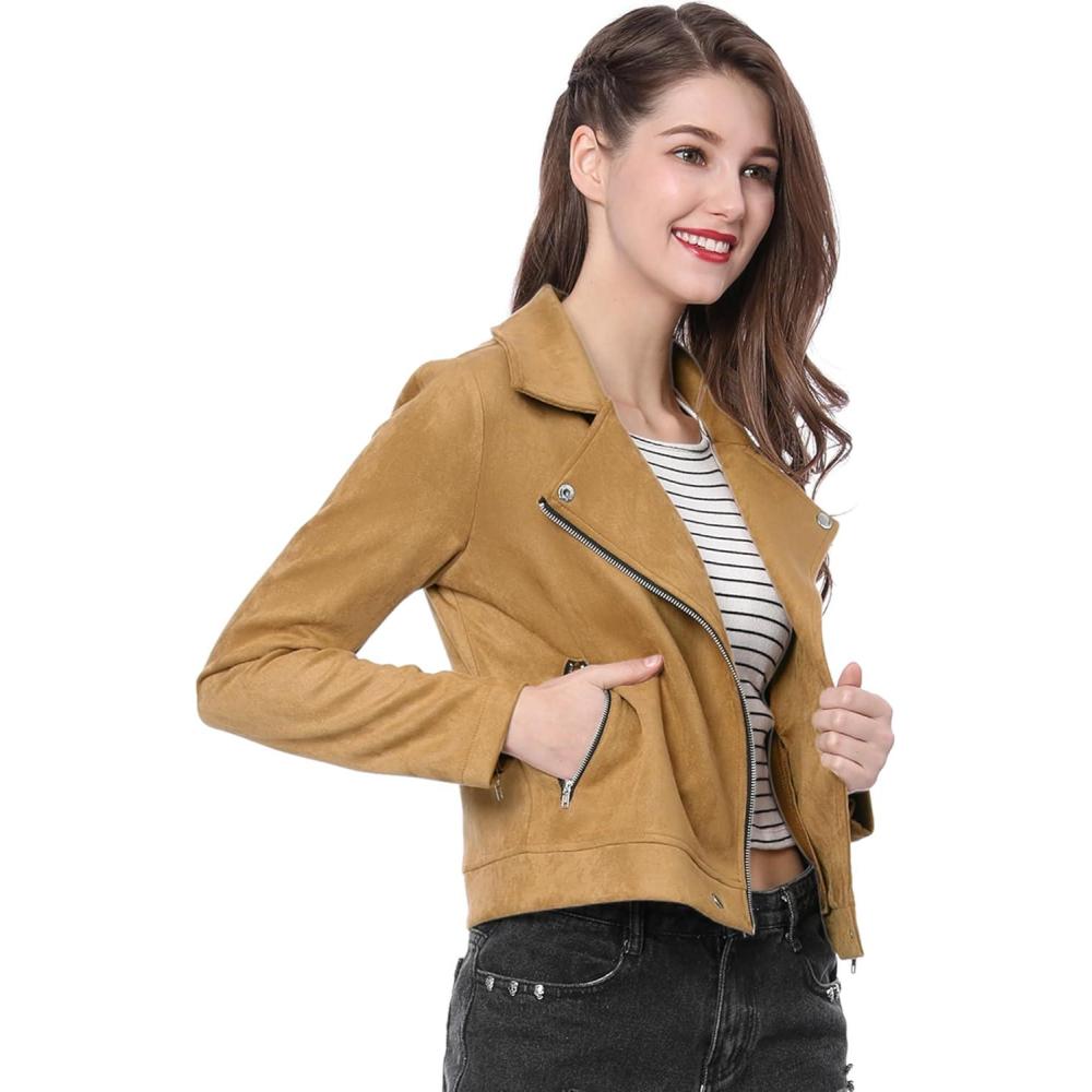 Our clearance section features the best deals on Allegra K Women’s Short Soft Zip Up Faux Suede Biker Moto Jacket(Khaki) and accessories. Check it out now!