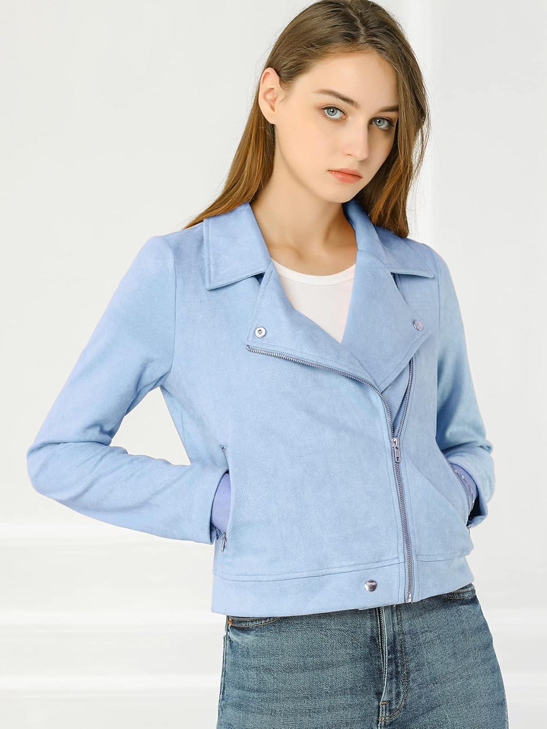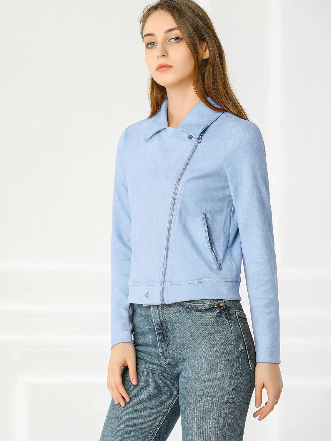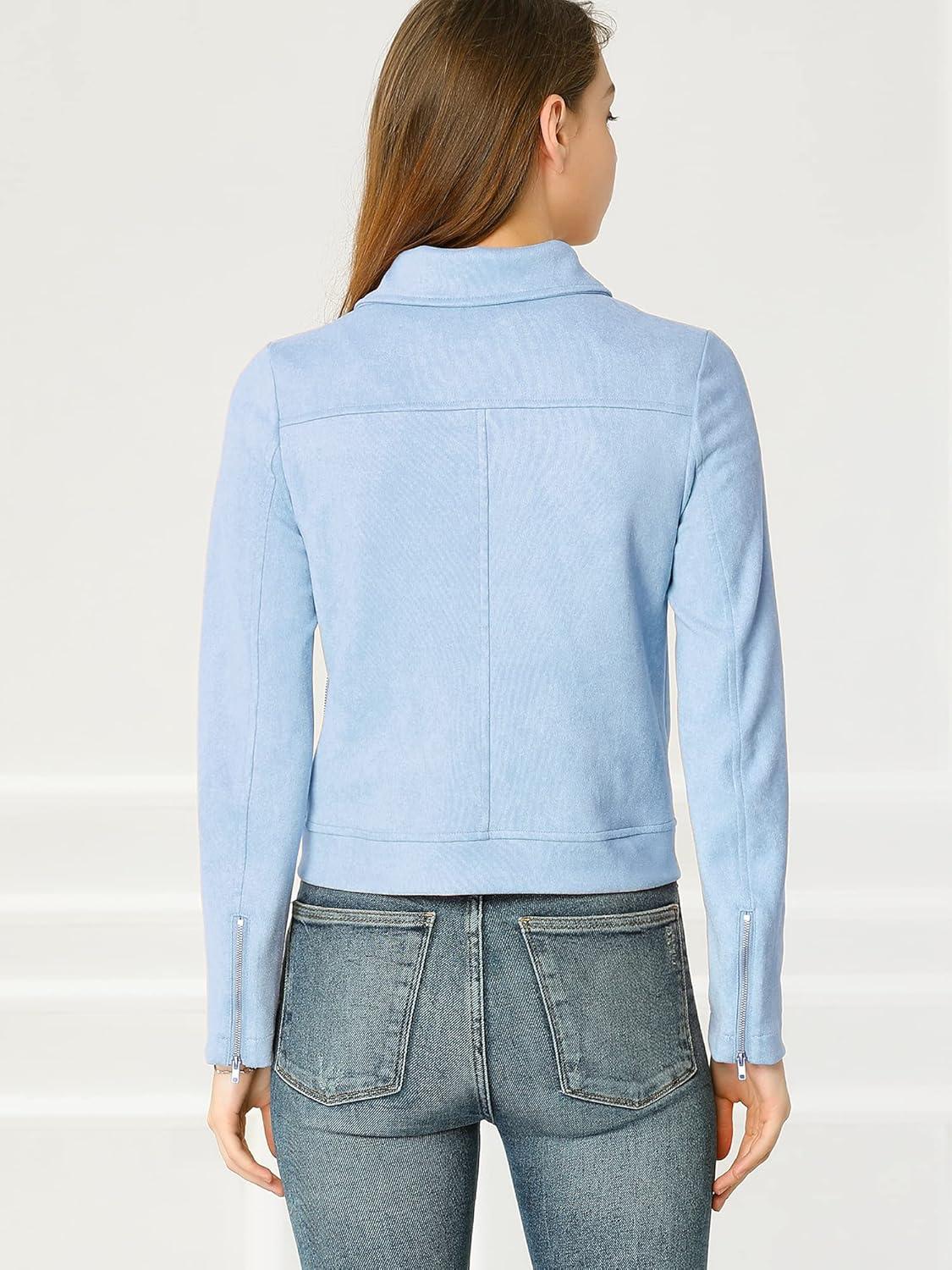 Allegra K Women’s Short Soft Zip Up Faux Suede Biker Moto Jacket(Light Blue)