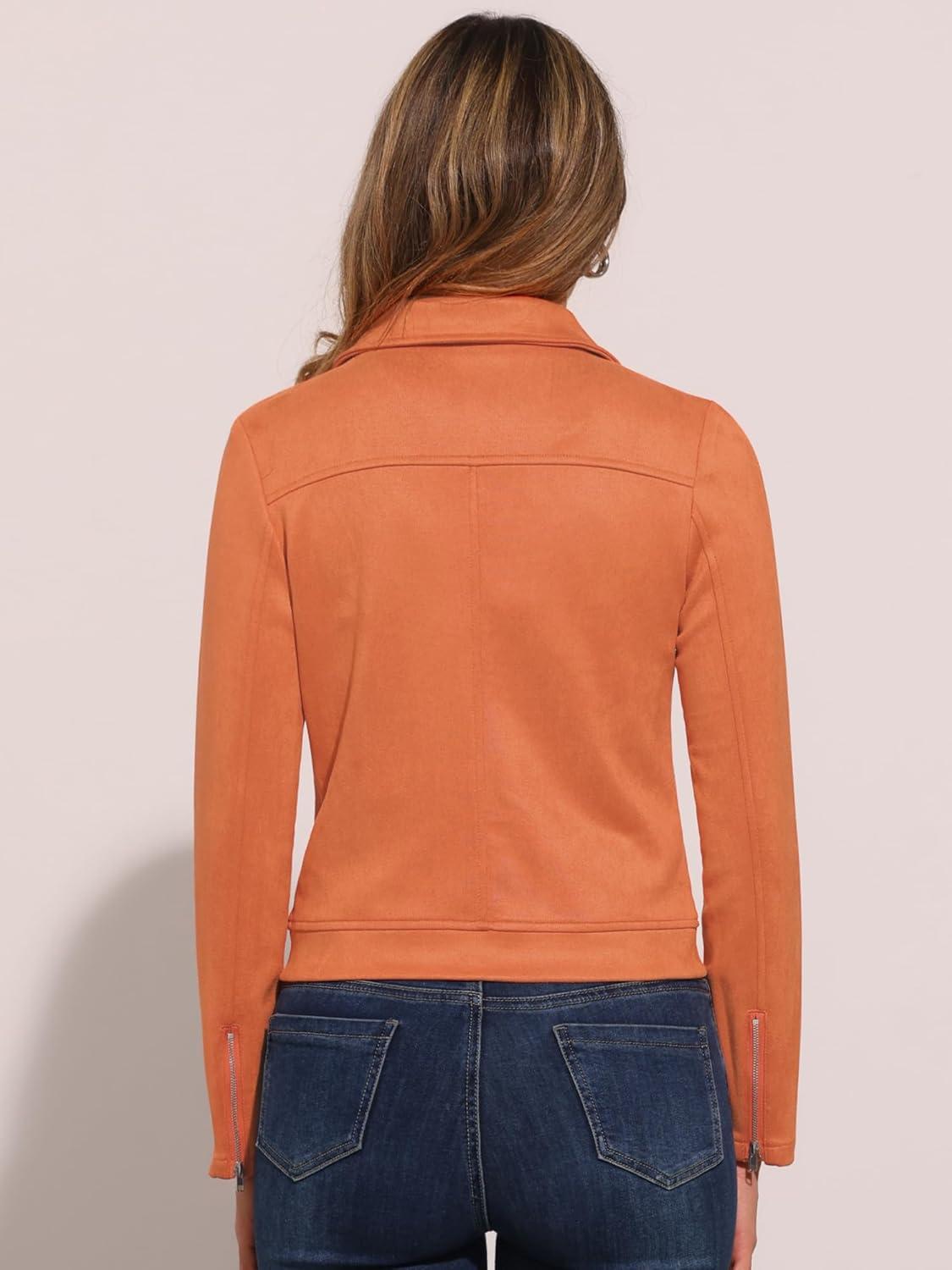 Allegra K Women's Short Soft Zip Up Faux Suede Biker Moto Jacket(Orange)