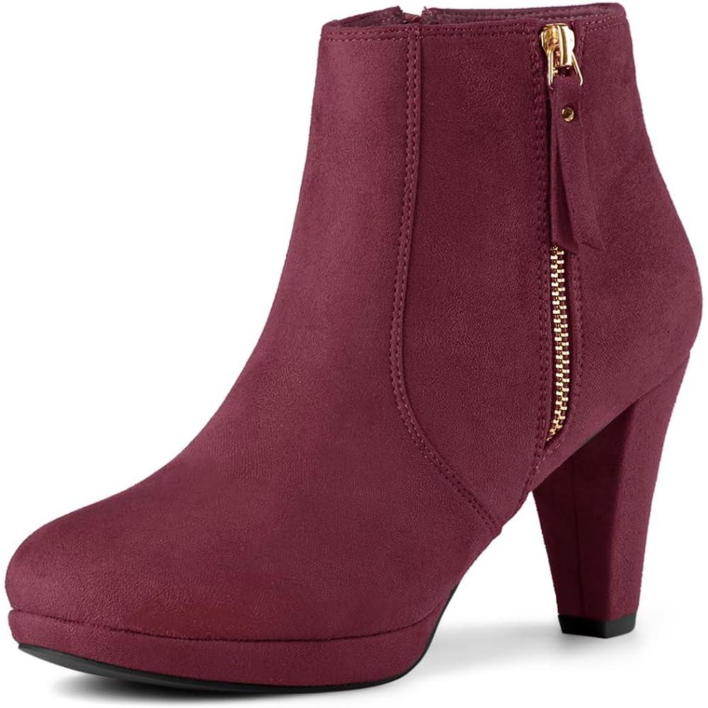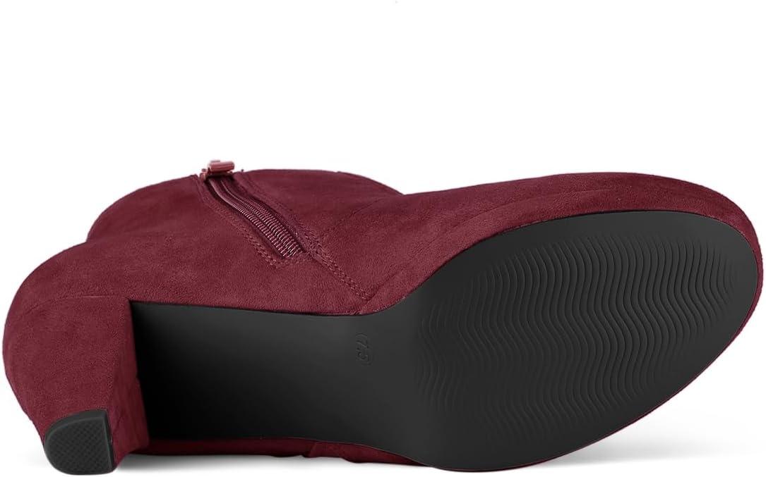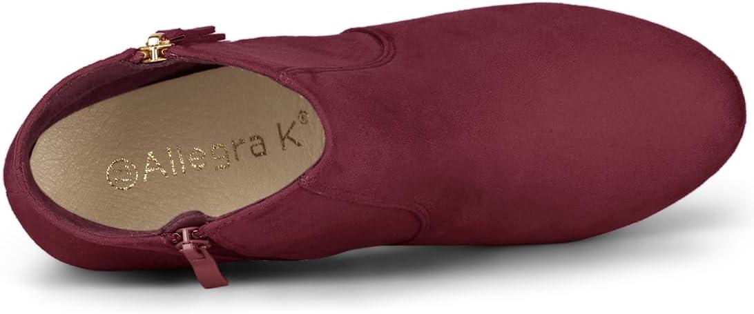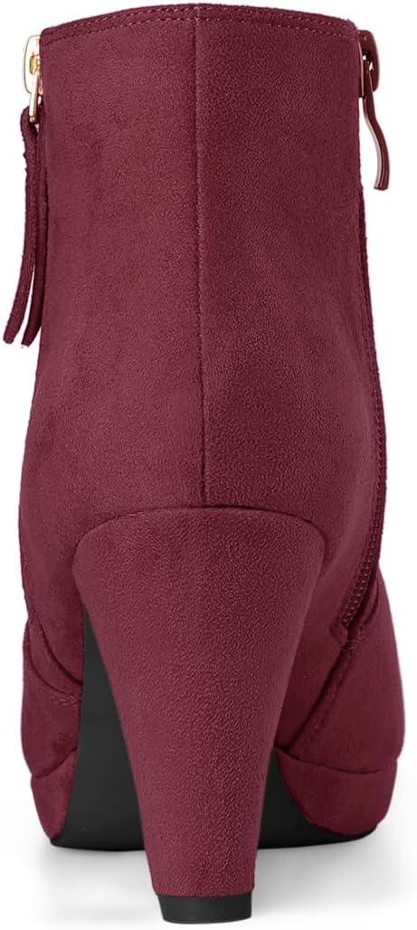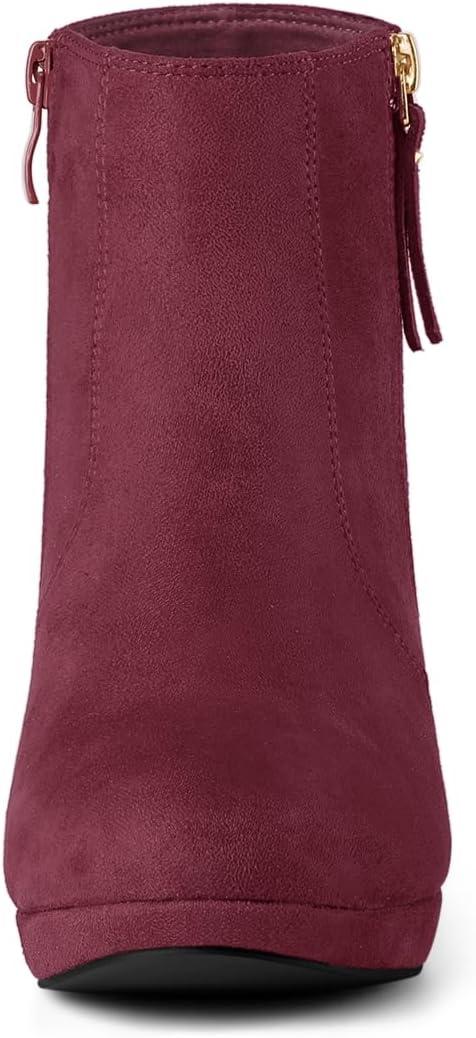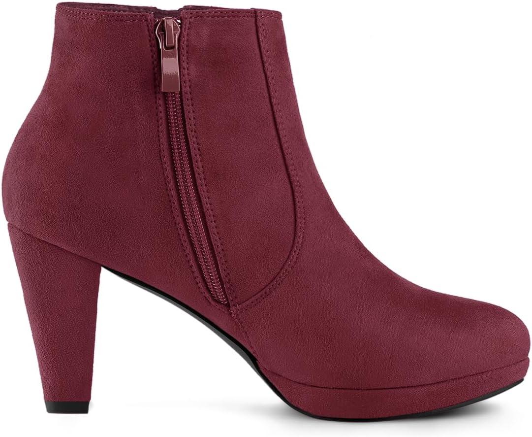 Allegra K Women’s Side Zip Low Platform Chunky Heel Ankle Booties(Burgundy)
