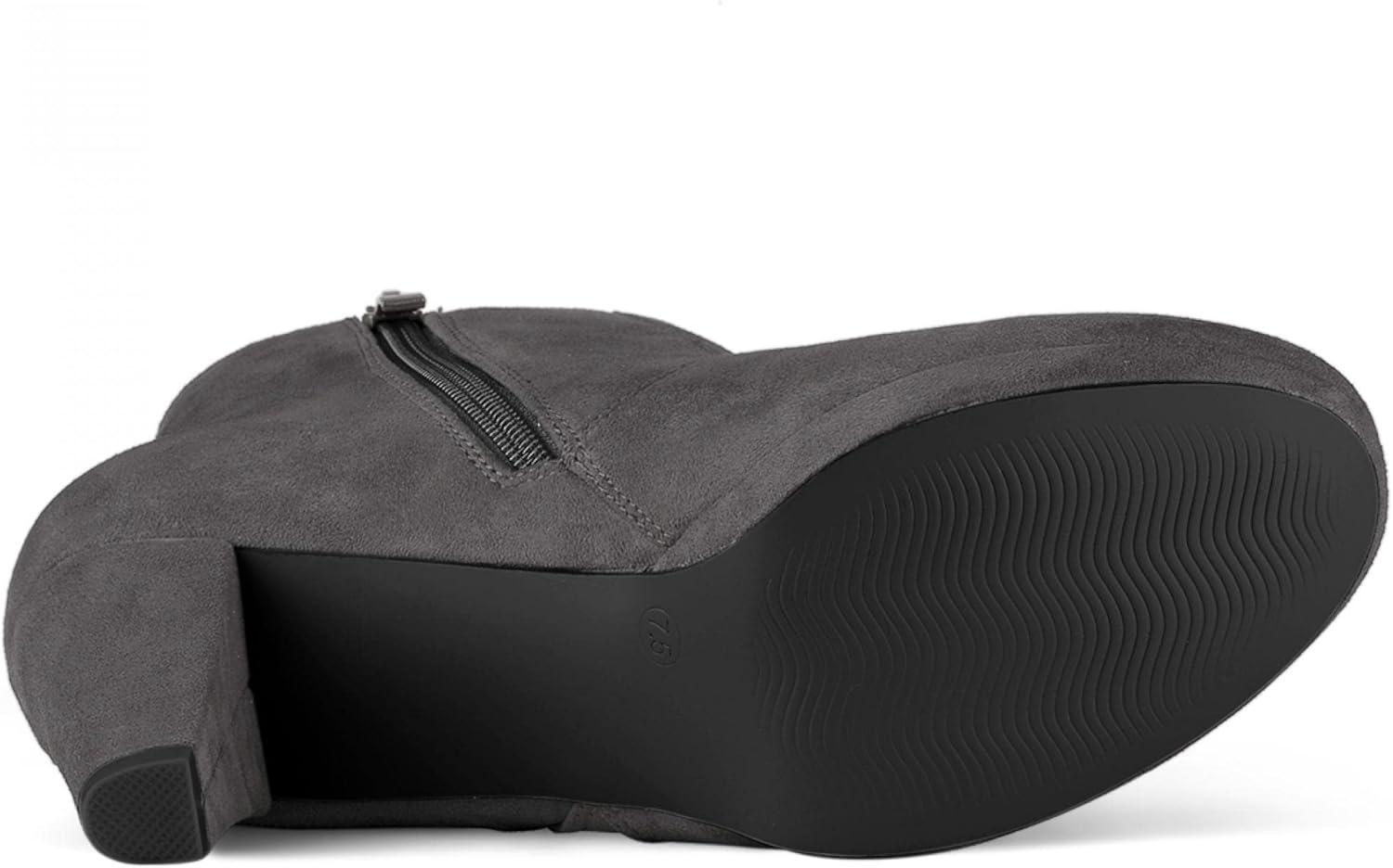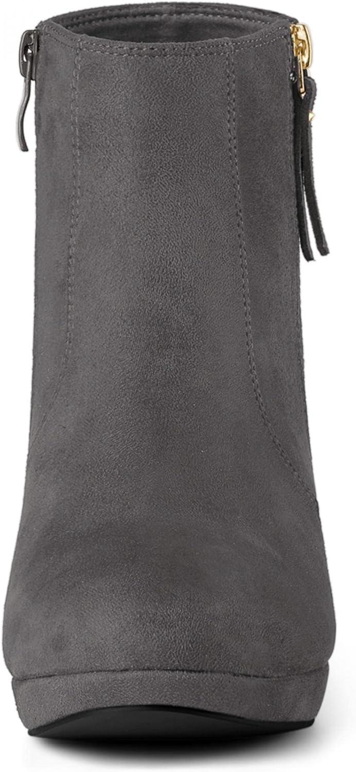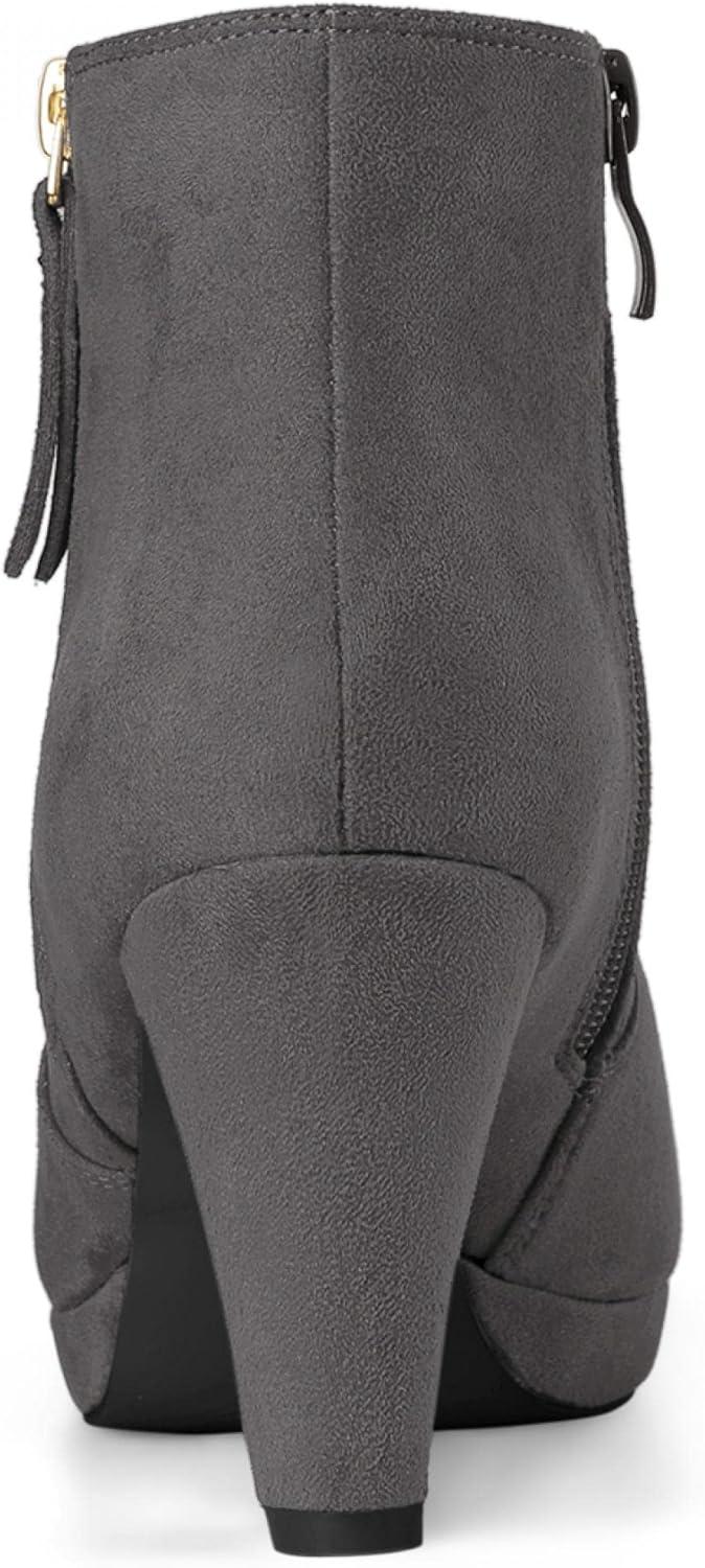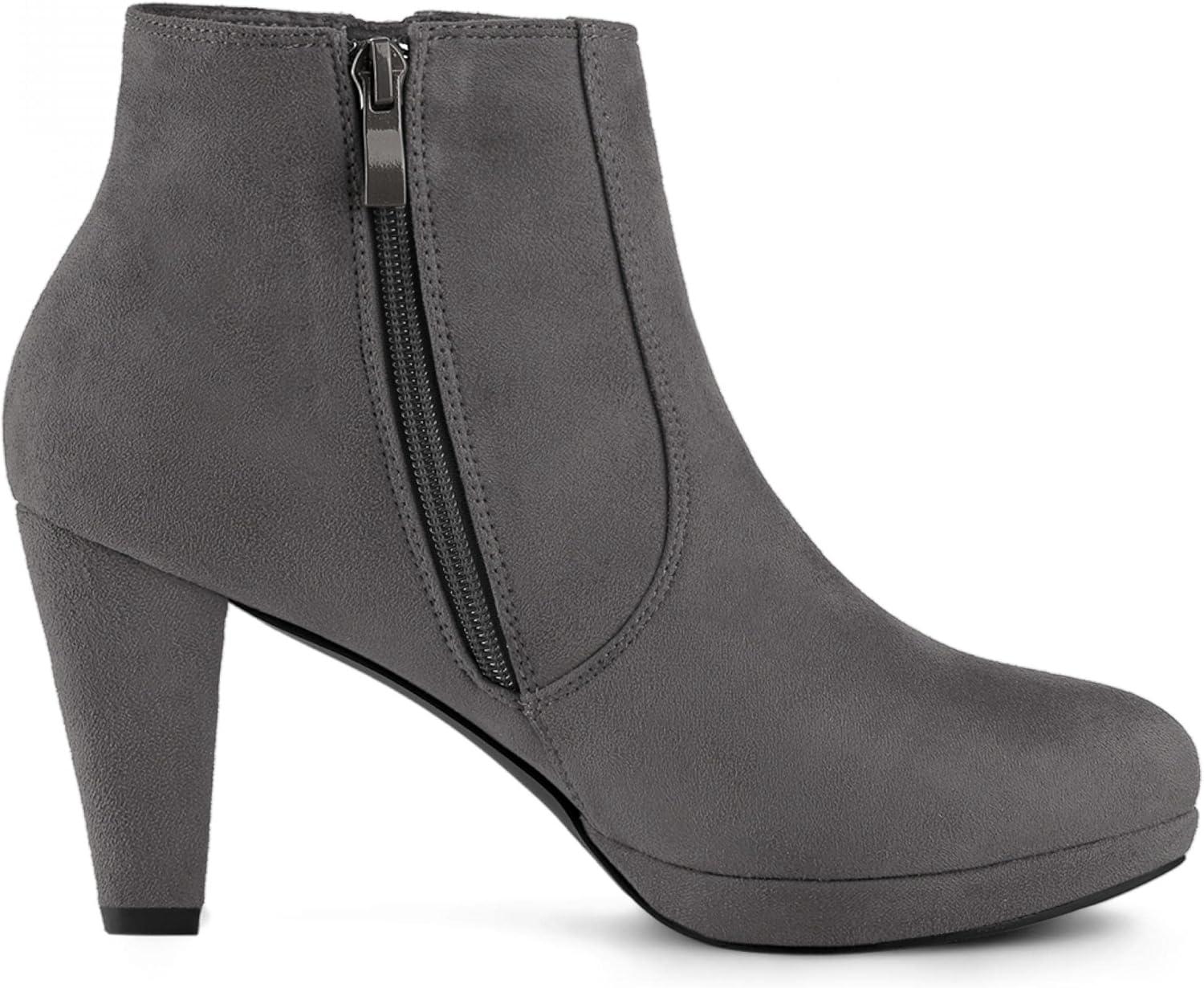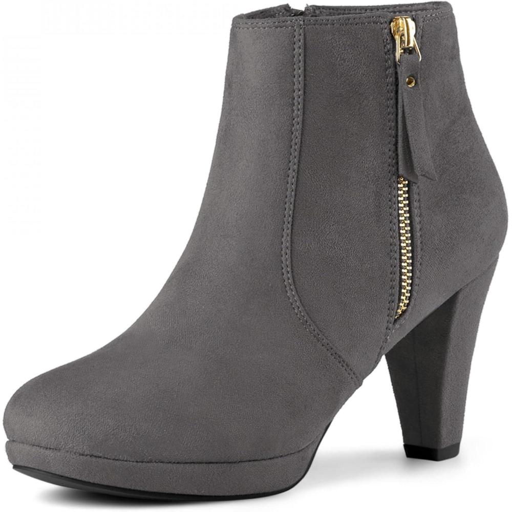 Allegra K Women’s Side Zip Low Platform Chunky Heel Ankle Booties(Grey)