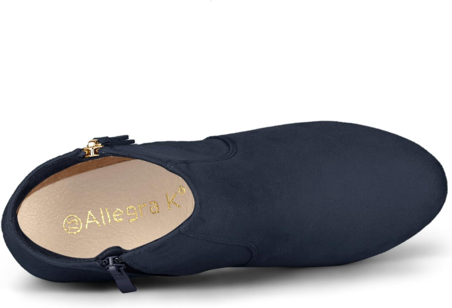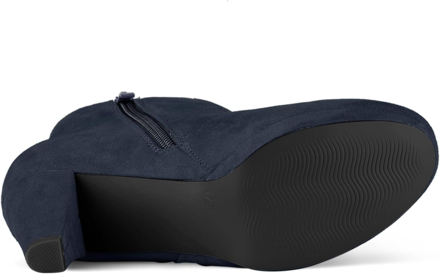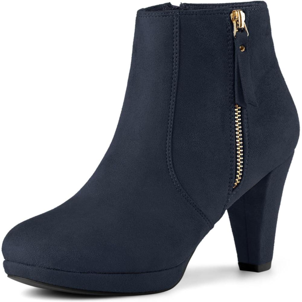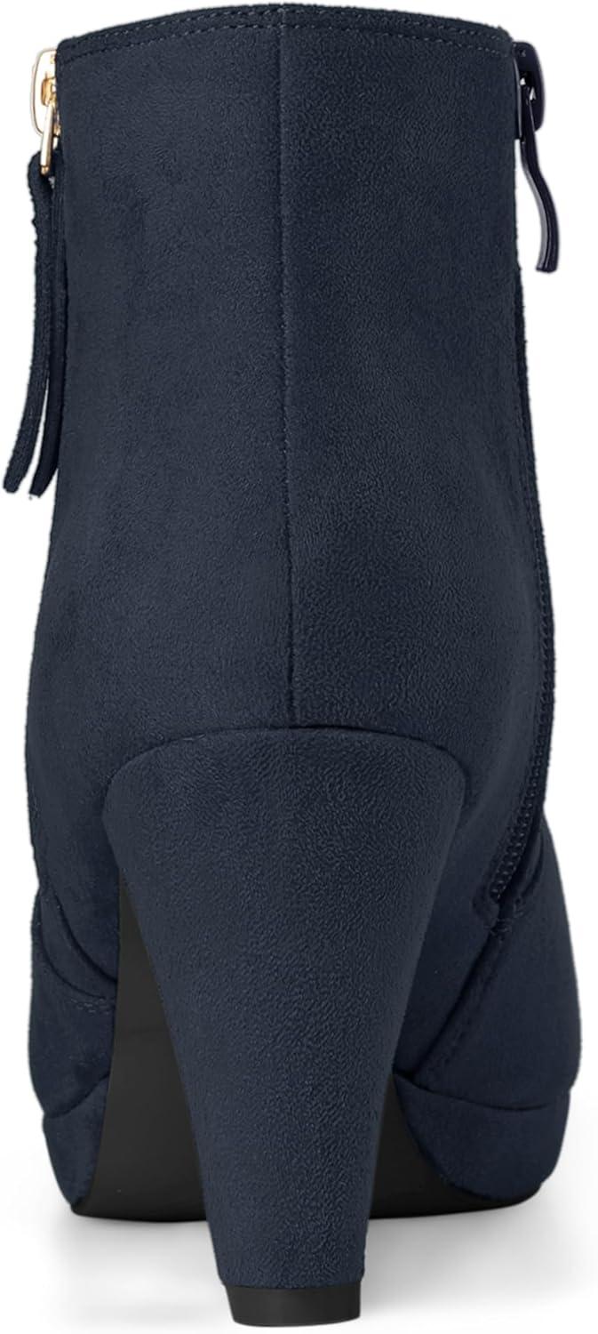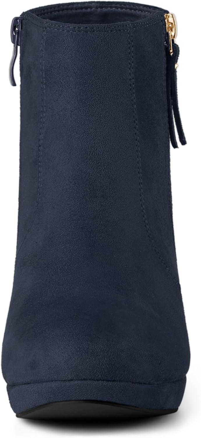 Allegra K Women’s Side Zip Low Platform Chunky Heel Ankle Booties(Navy Blue)