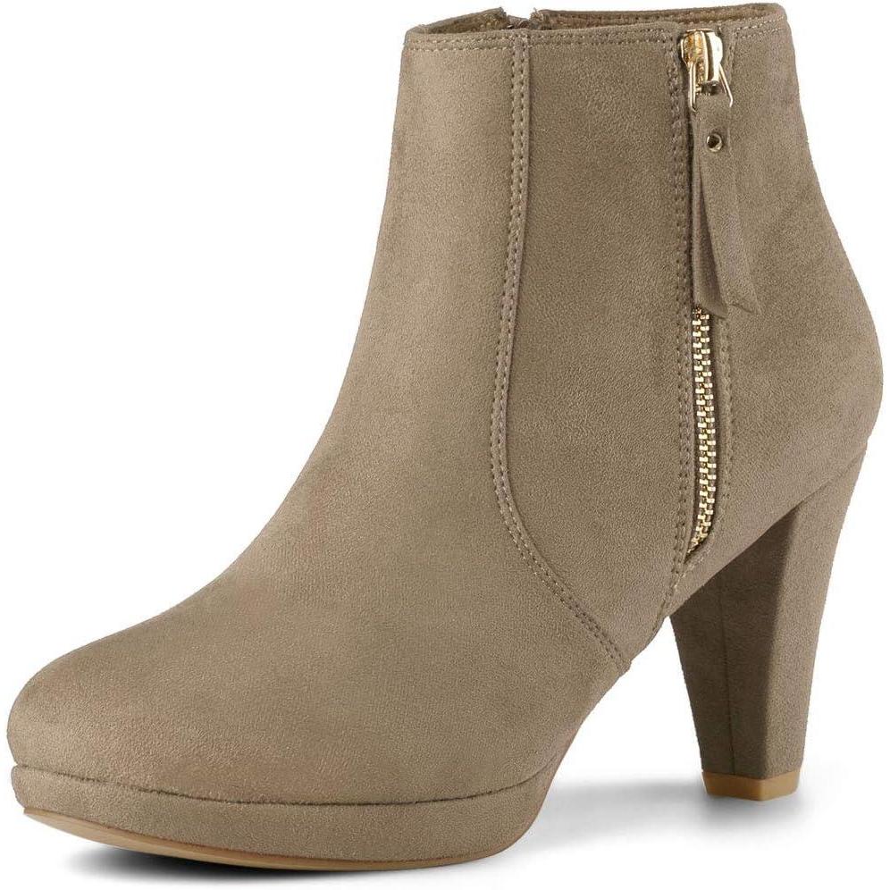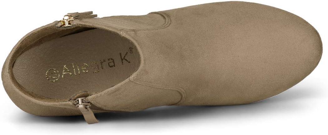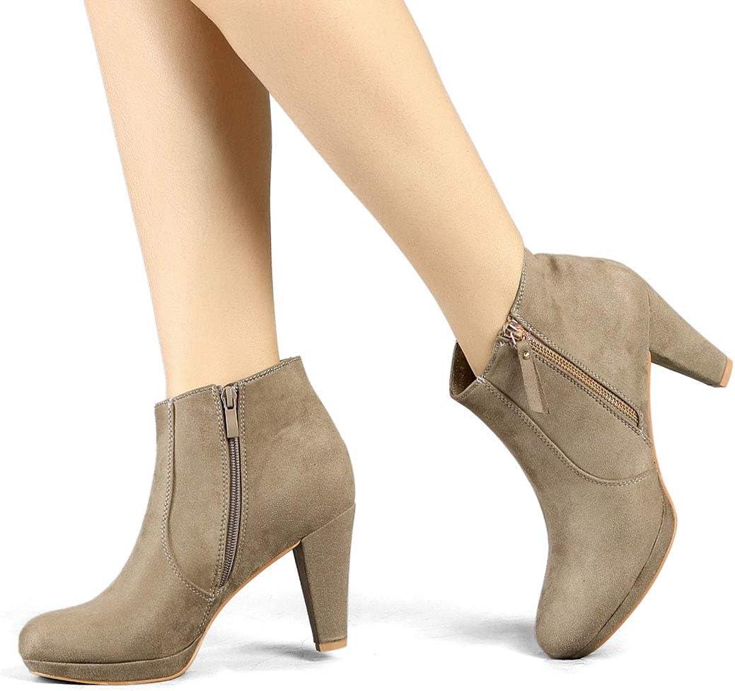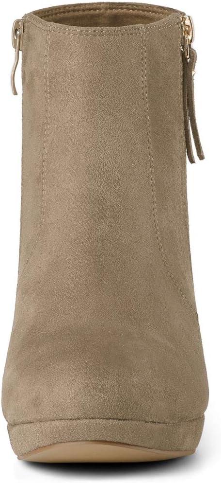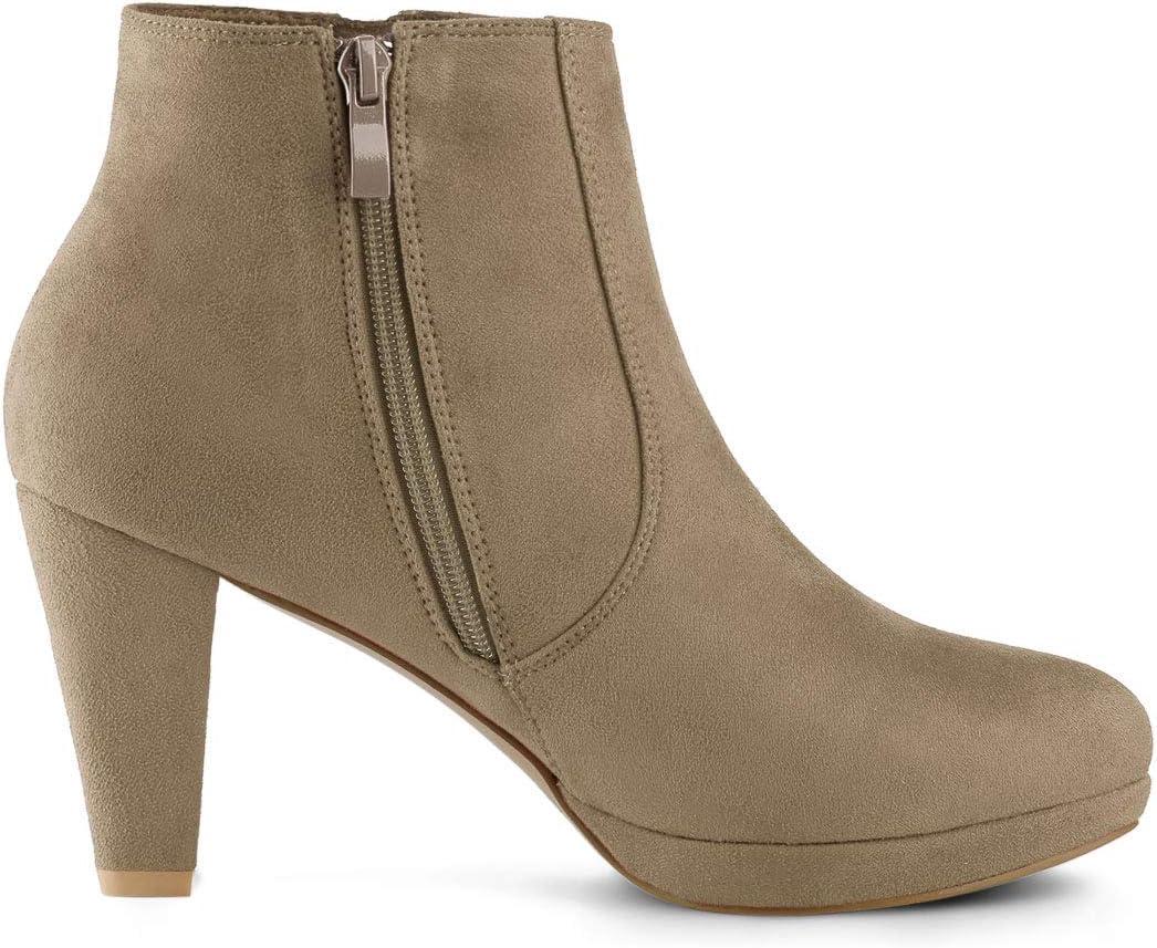 Allegra K Women’s Side Zip Low Platform Chunky Heel Ankle Booties(Nude)