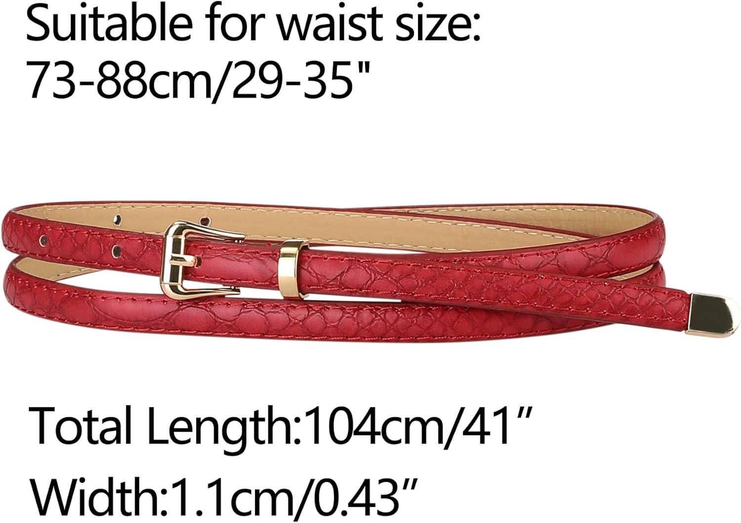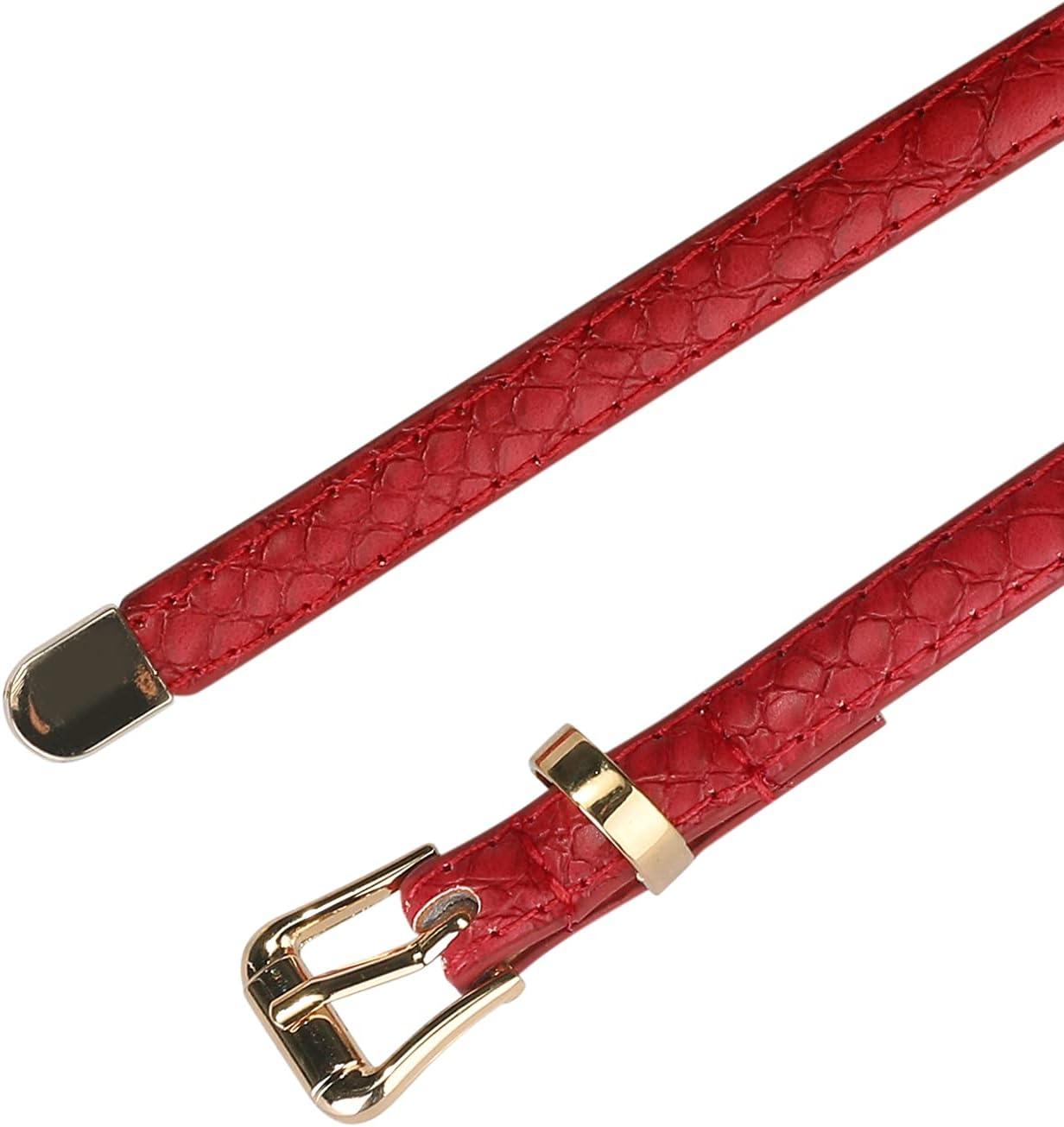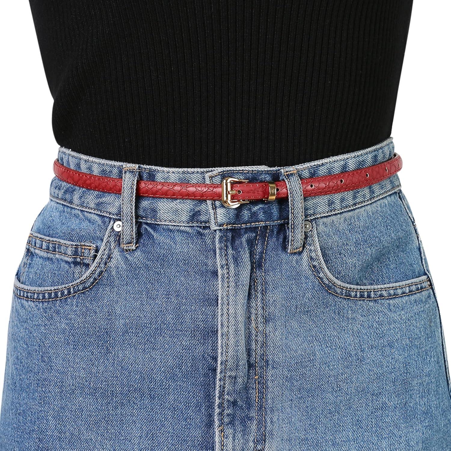 Allegra K Womens Skinny Embossed Leather Belts Alloy Pin Buckle Belt for Jeans Dresses Pants(Wine Red)
