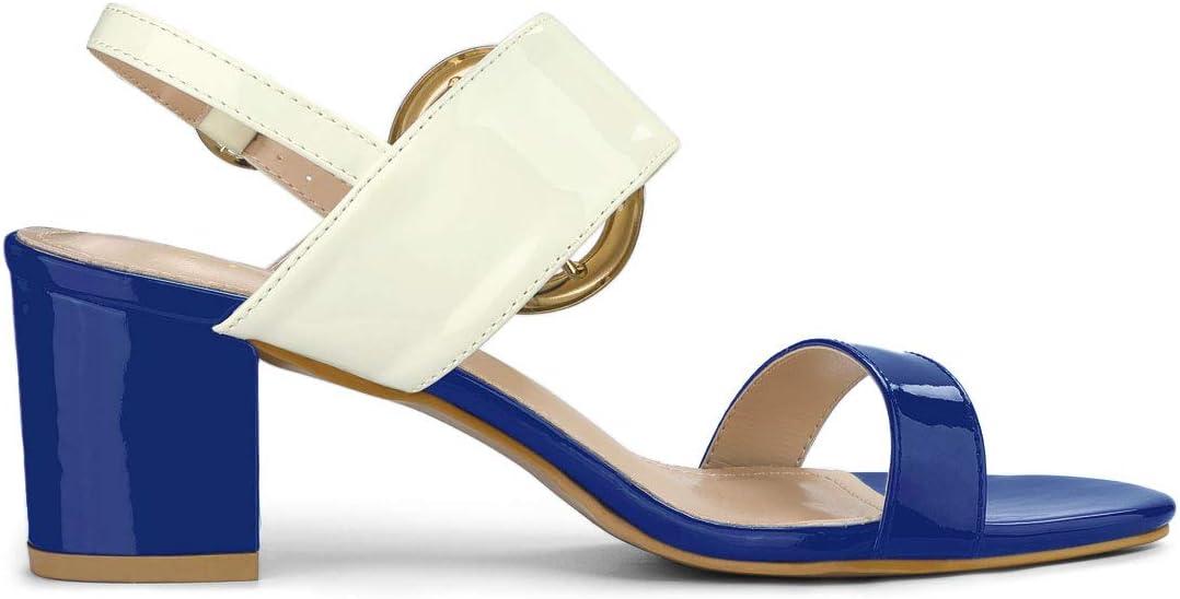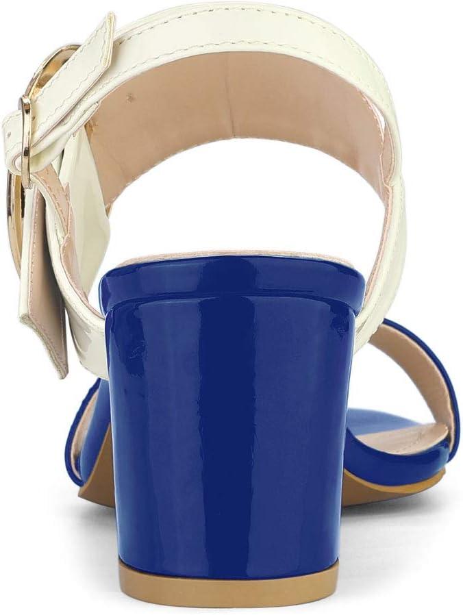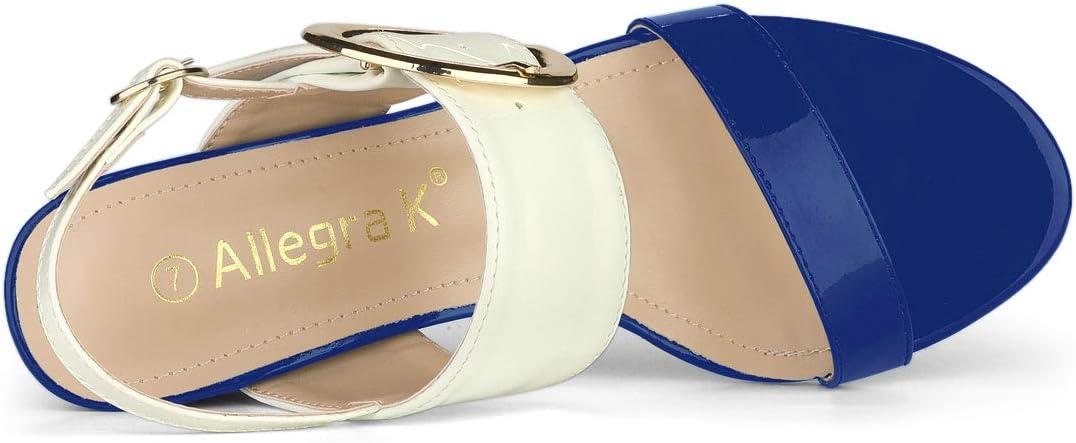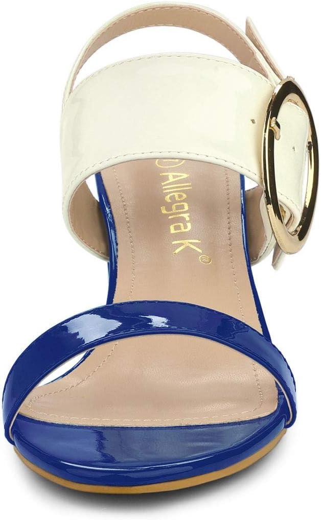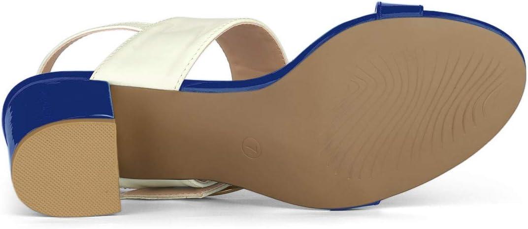 Allegra K Women’s Slingback Block High Heel Sandals(Blue White)