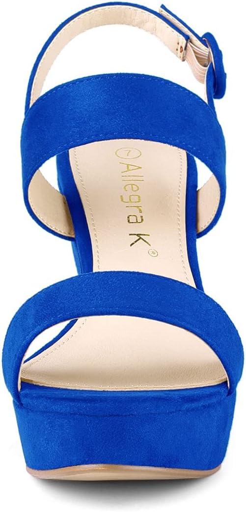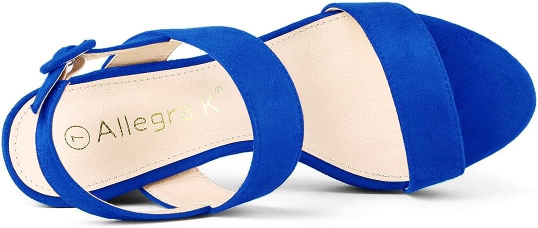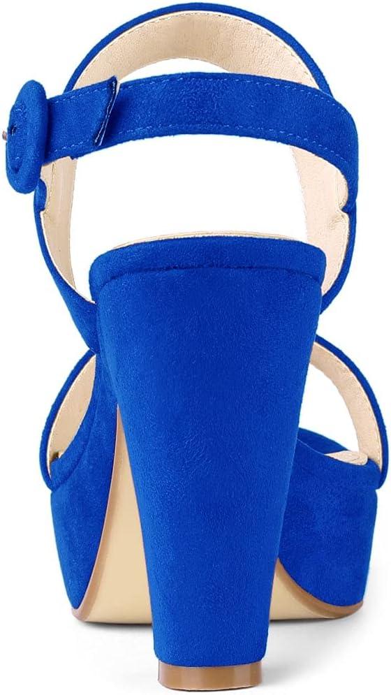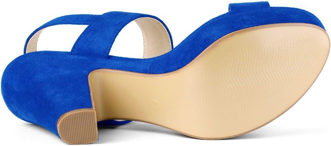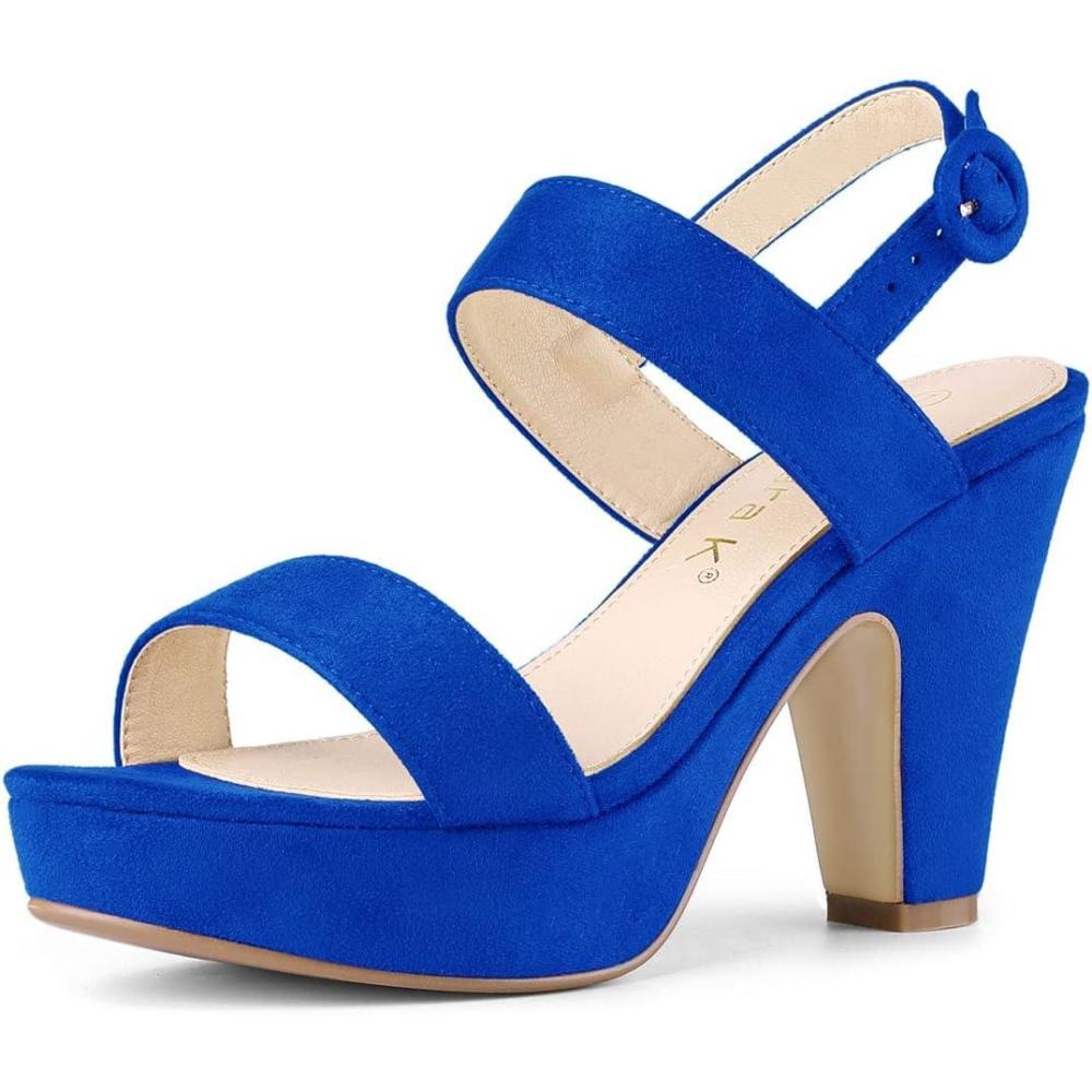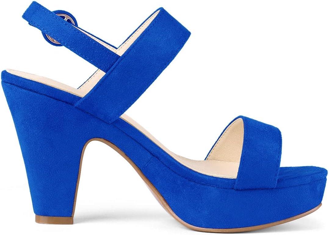 Allegra K Women’s Slingback Platform Heels Chunky High Heel Sandals(Deep Blue)