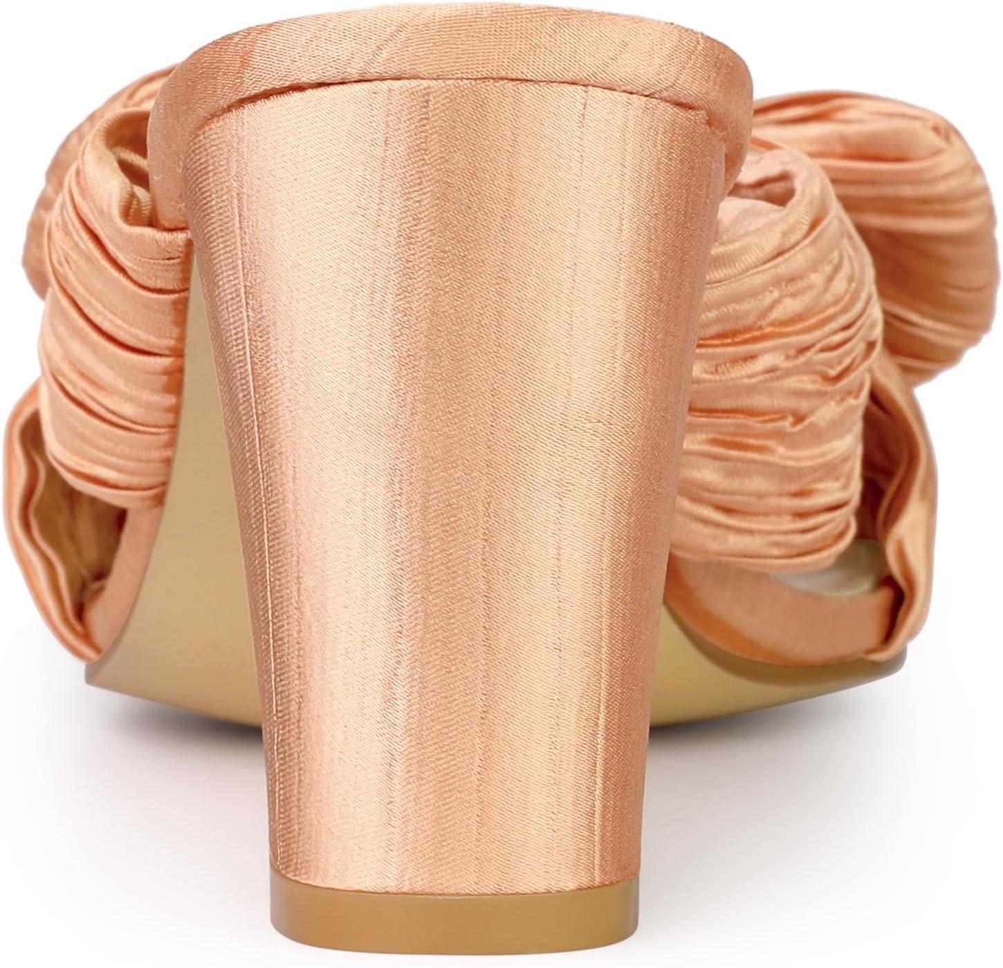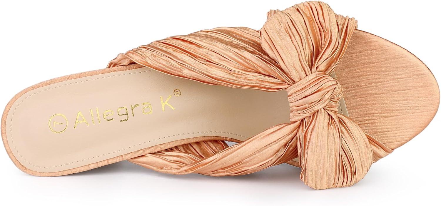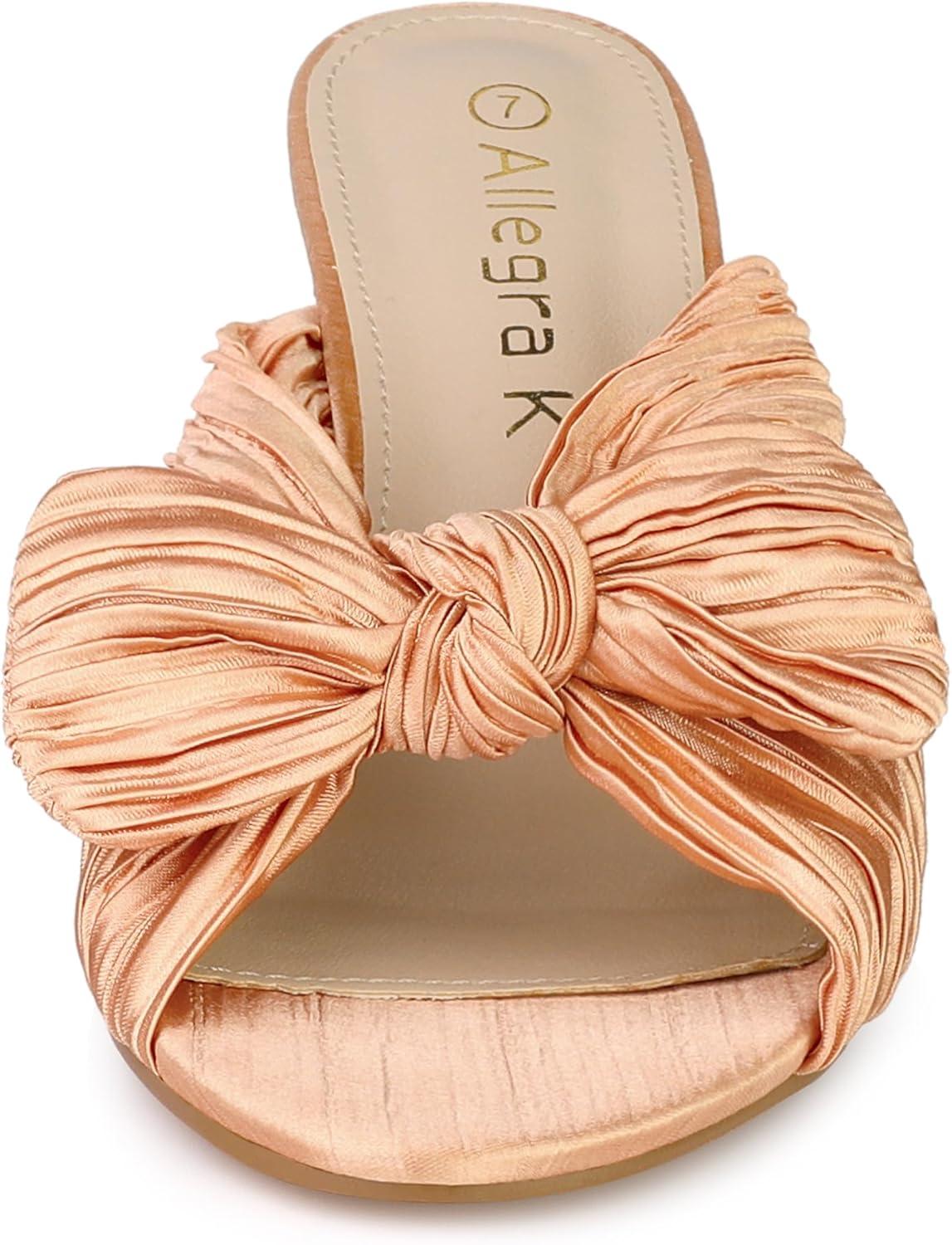 Allegra K Women’s Slip on Pleated Bow Heels Chunky Heel Slouches Slides Sandals(Rose Gold)