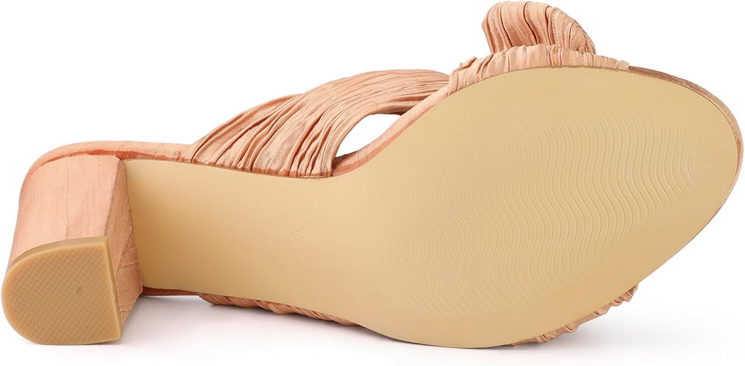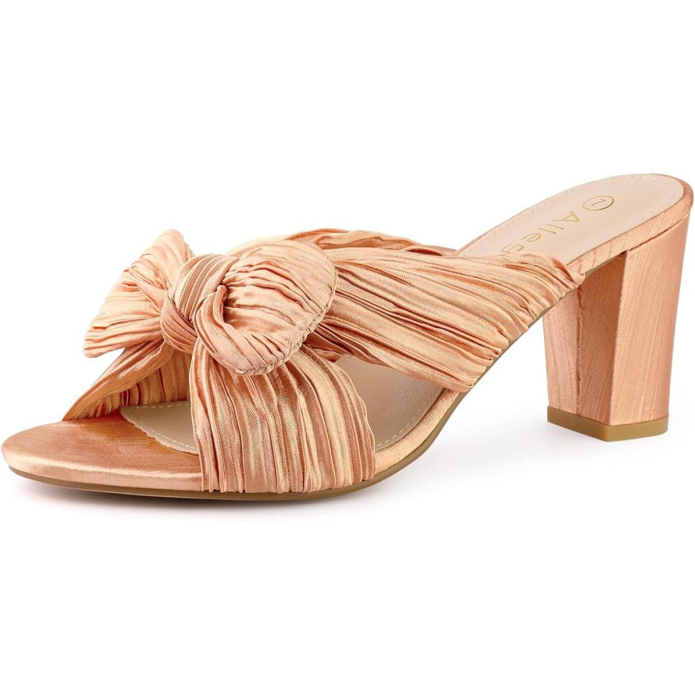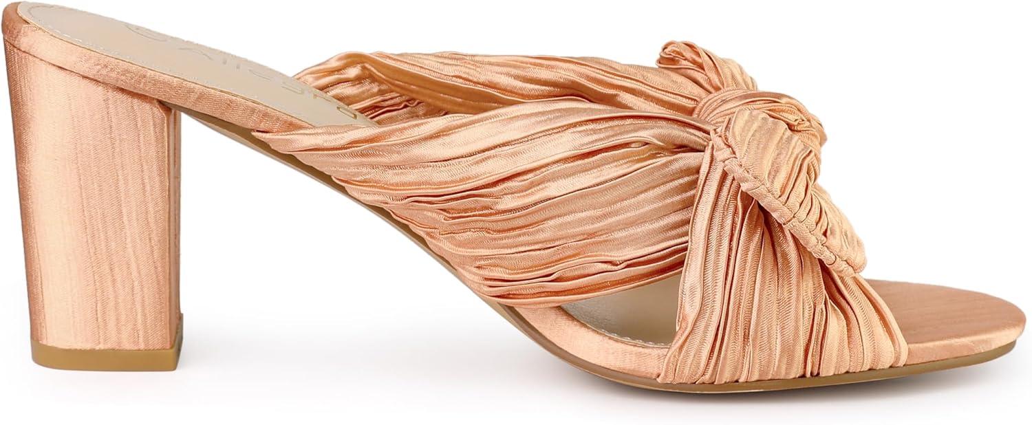 Allegra K Women’s Slip on Pleated Bow Heels Chunky Heel Slouches Slides Sandals(Rose Gold)