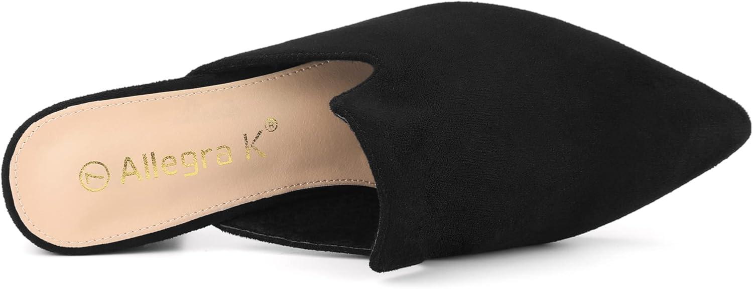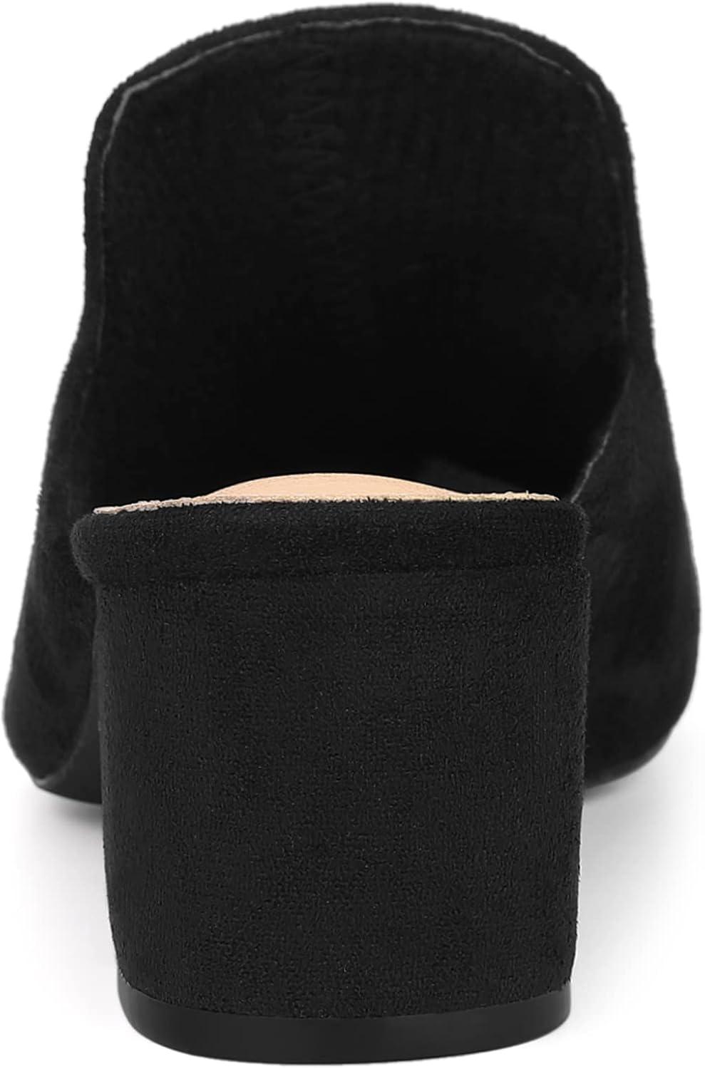 Allegra K Women’s Slip on Pointed Toe Chunky Heels Slide Mules(Black)