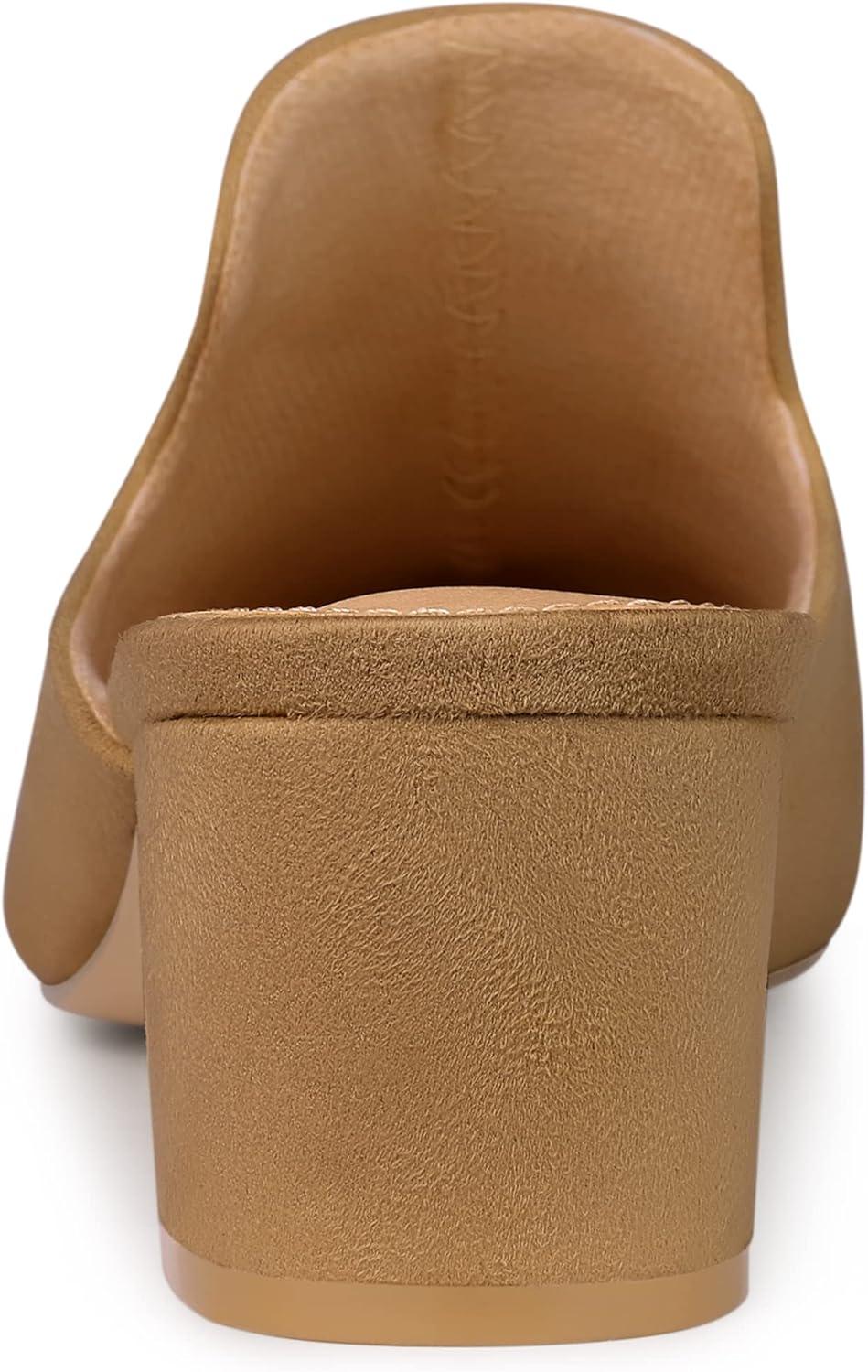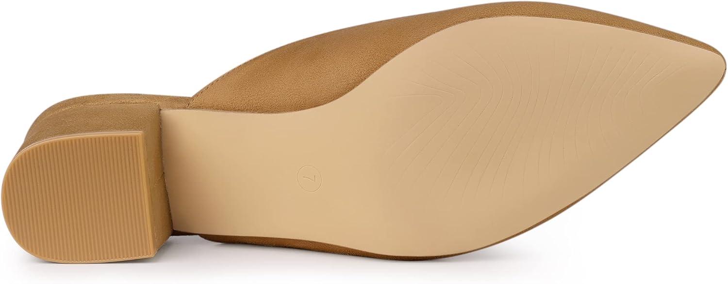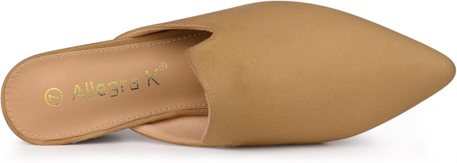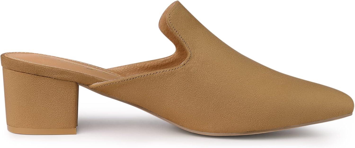 Allegra K Women’s Slip on Pointed Toe Chunky Heels Slide Mules(Brown)