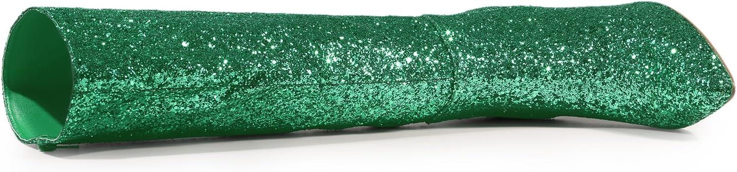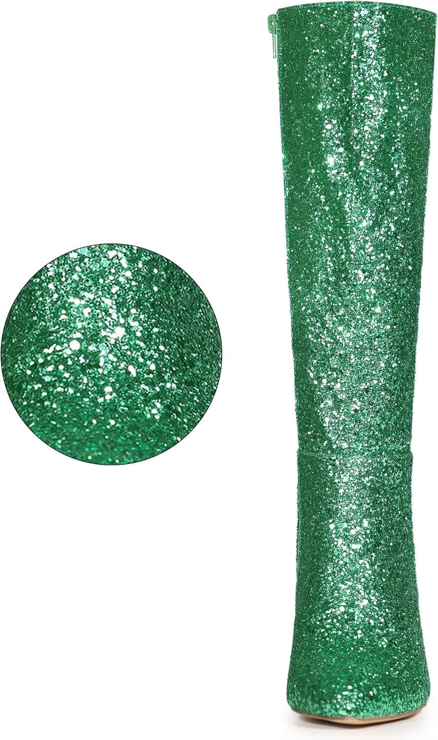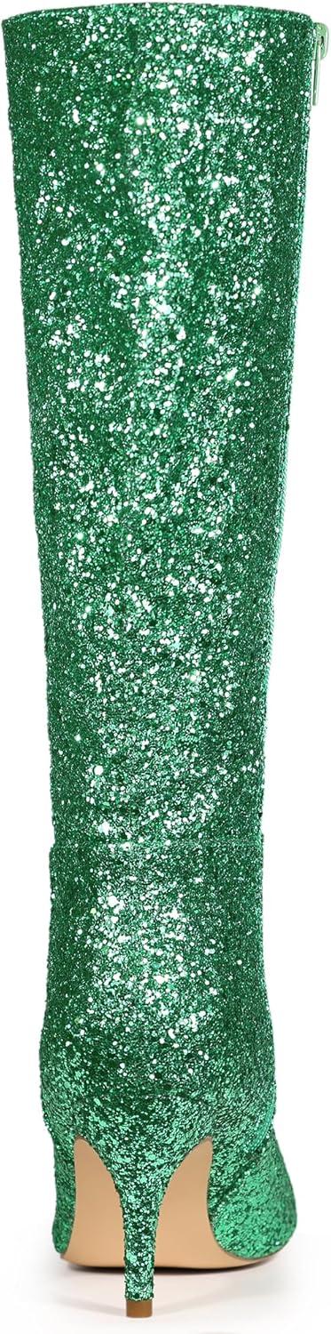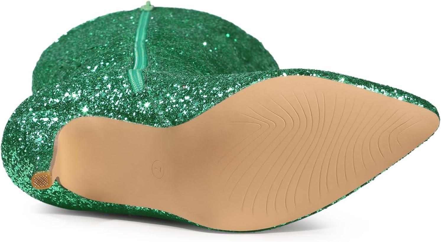Allegra K Women’s Sparkle Glitter Pointy Toe Stiletto Heel Knee High Boots(Green)