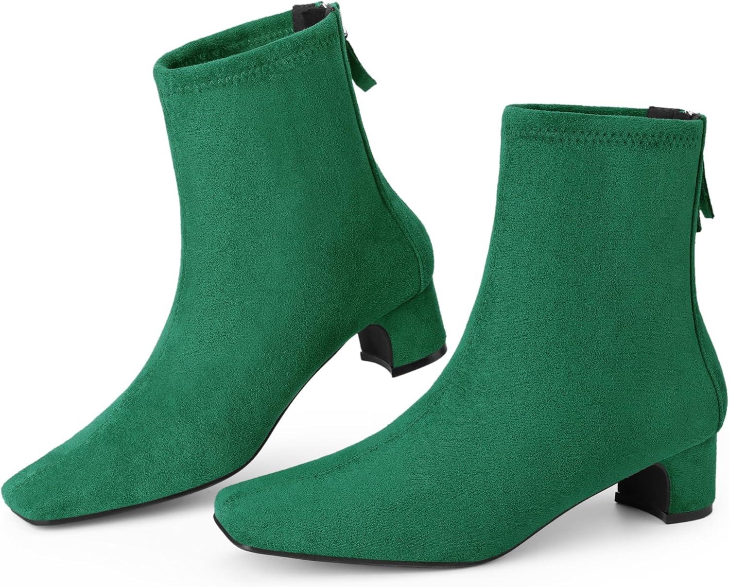 Allegra K Women’s Square Toe Ankle Boots Chunky Low Heels Boots(Emerald Green)