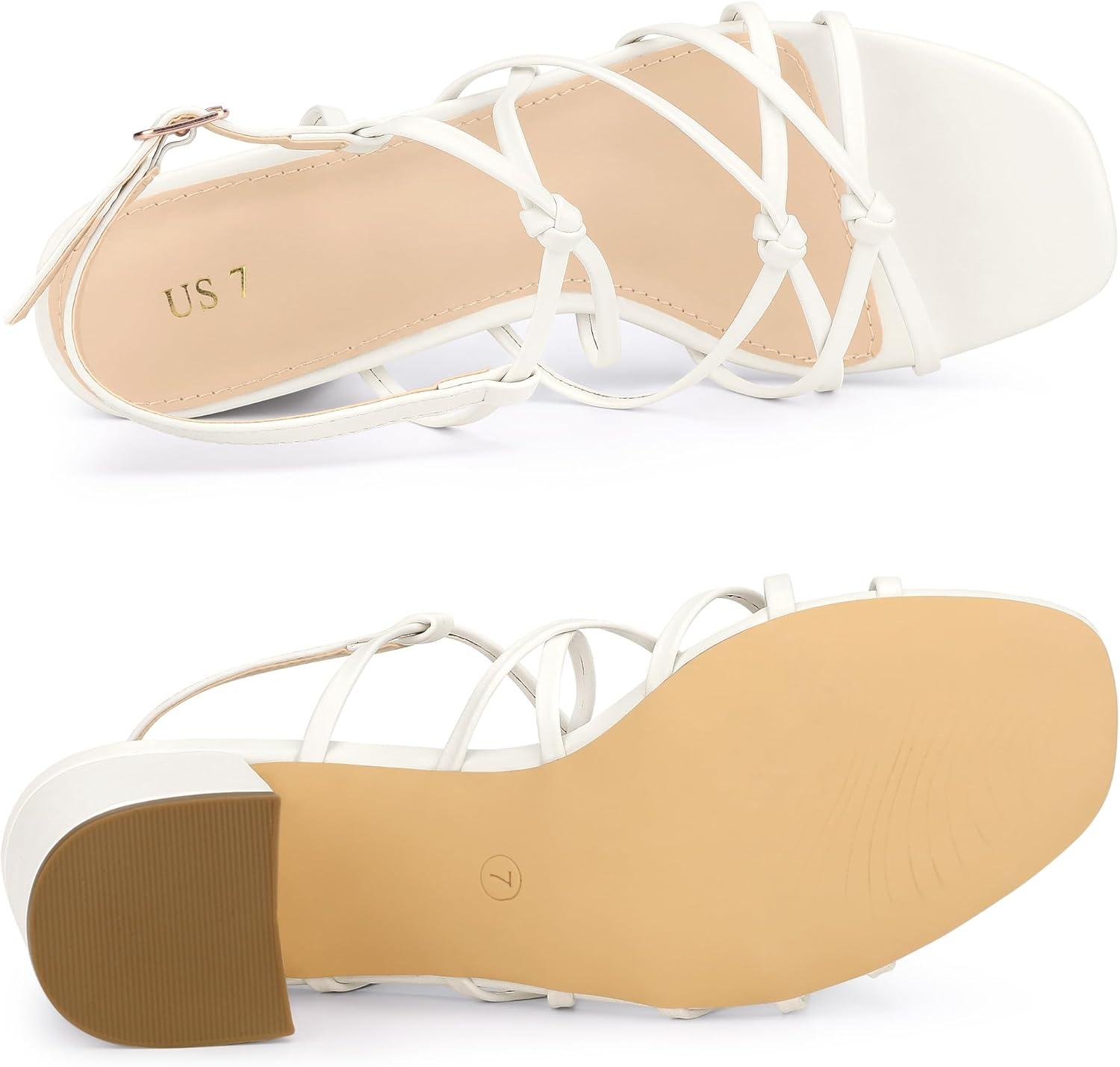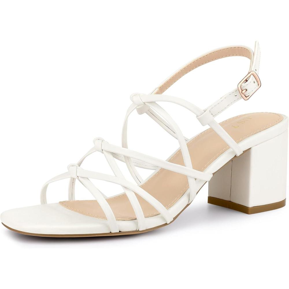 Allegra K Women’s Square Toe Knots Ankle Strap Chunky Heels Sandals(White)