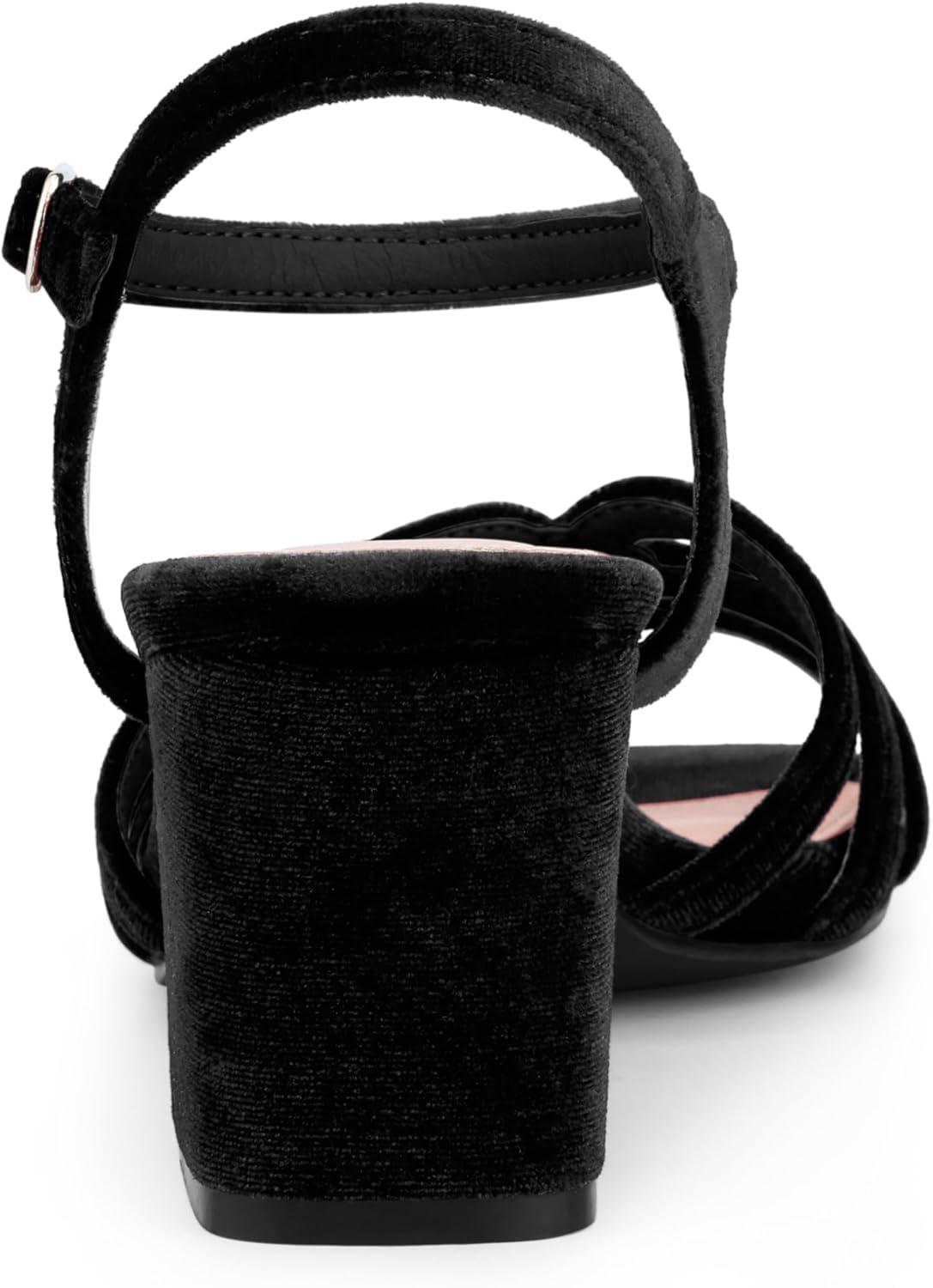 Allegra K Women’s Square Toe Slingback Chunky Heels Velvet Sandals(Black)
