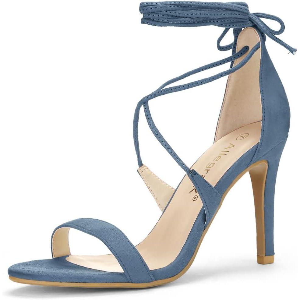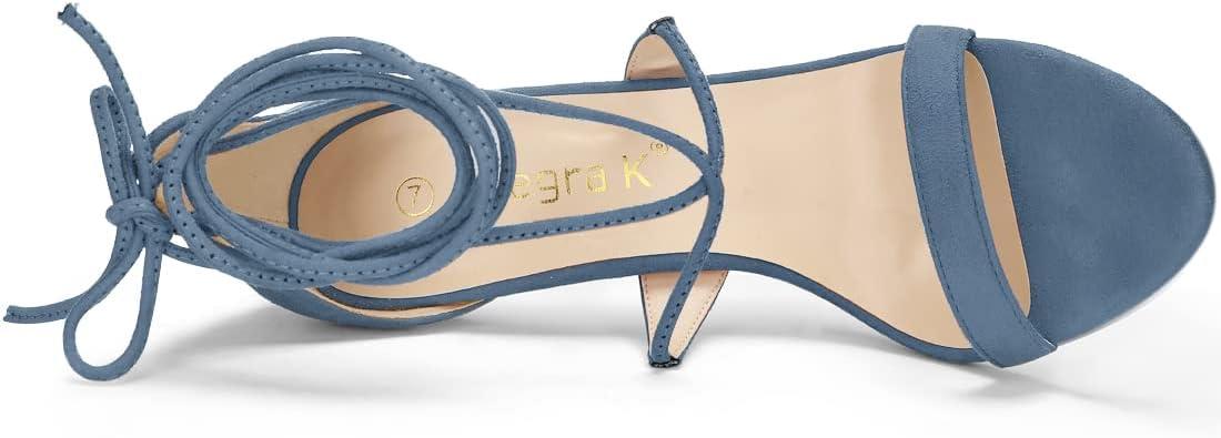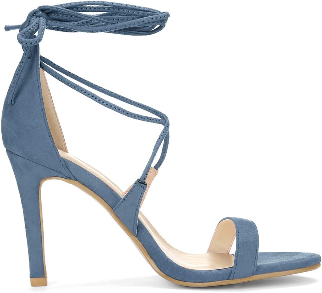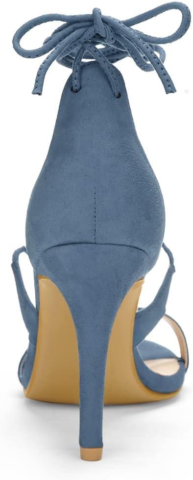 Allegra K Women’s Stiletto Heel Lace-up Sandals(Haze Blue)