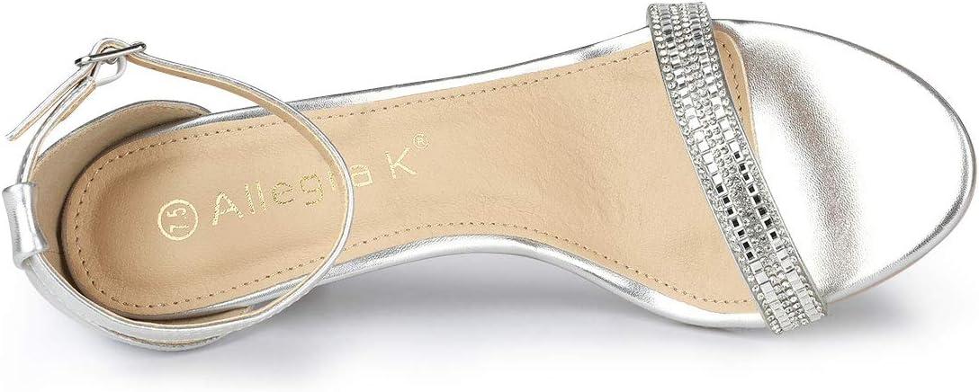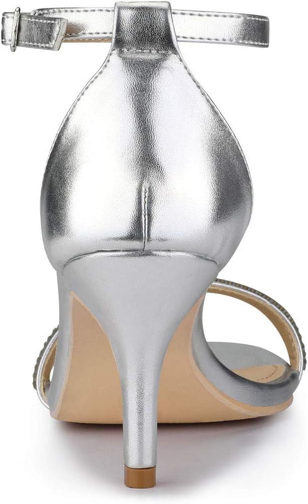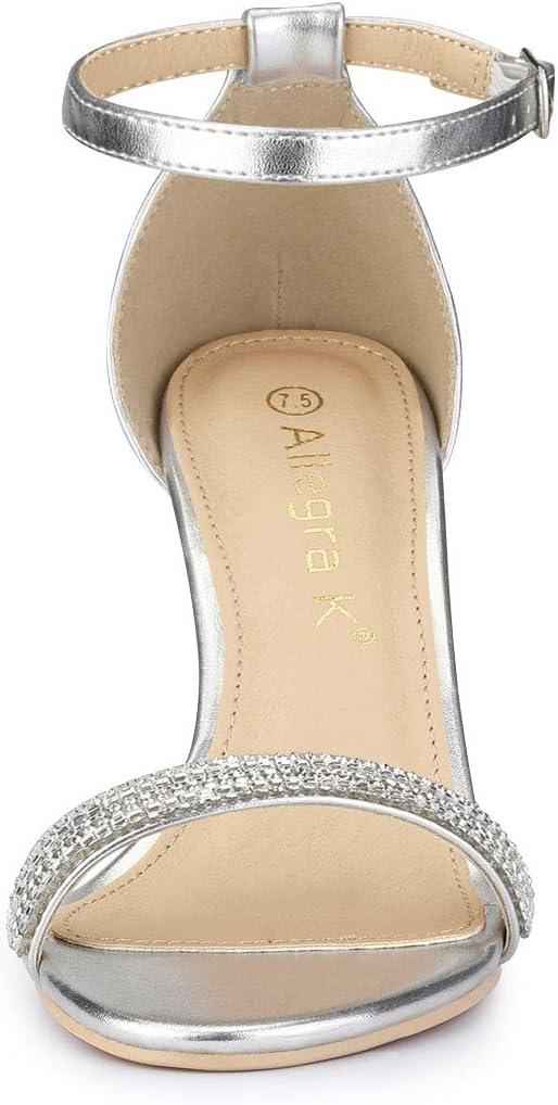 Allegra K Women’s Stiletto Heels Rhinestone Ankle Strap Sandals(Silver)
