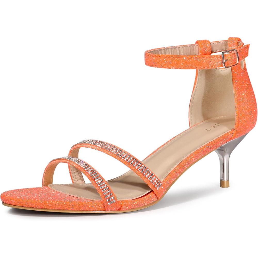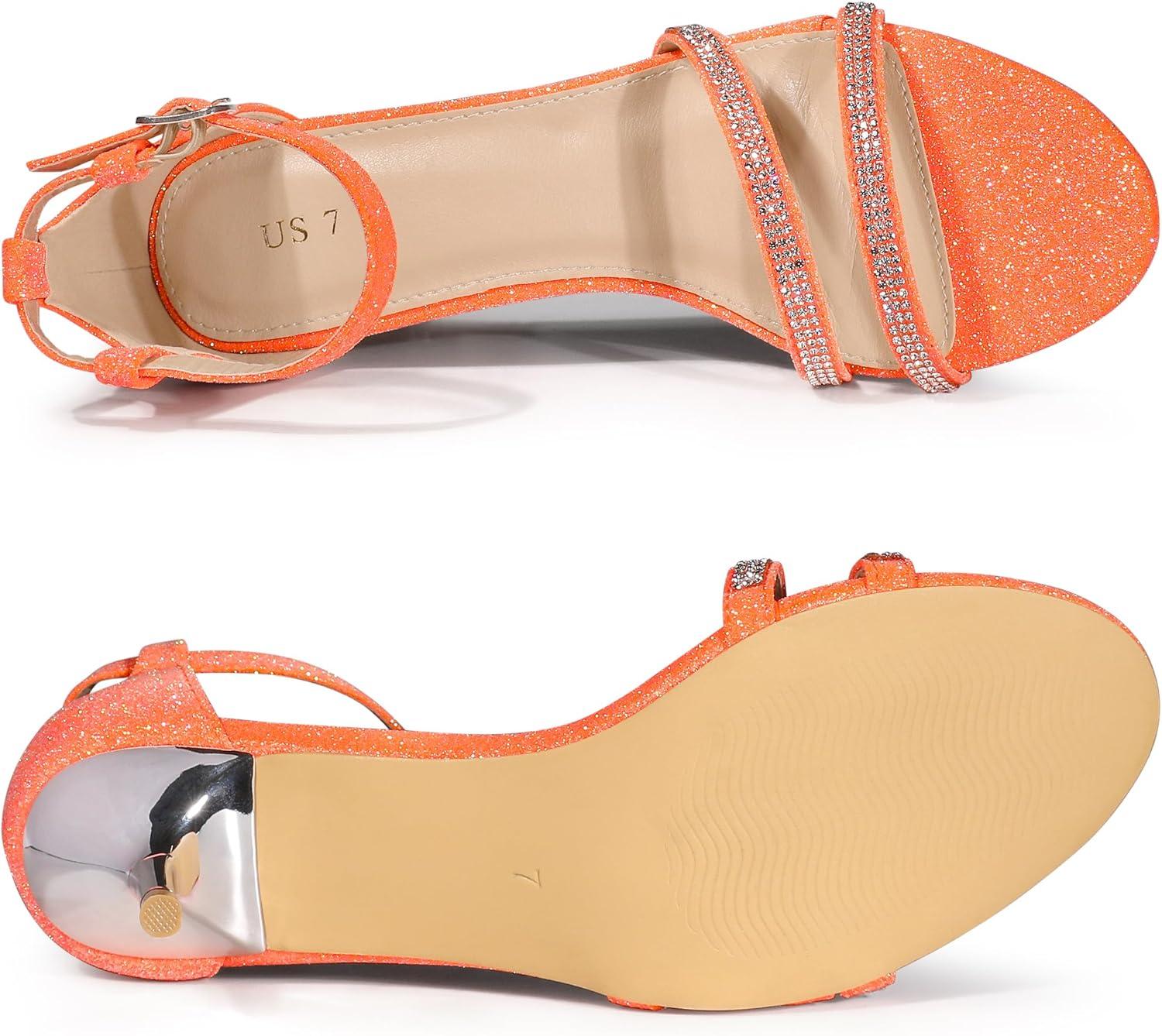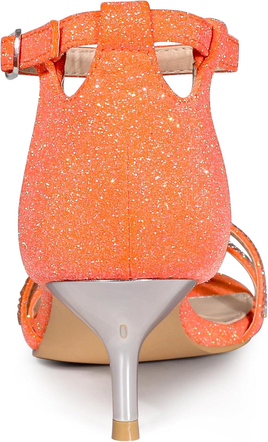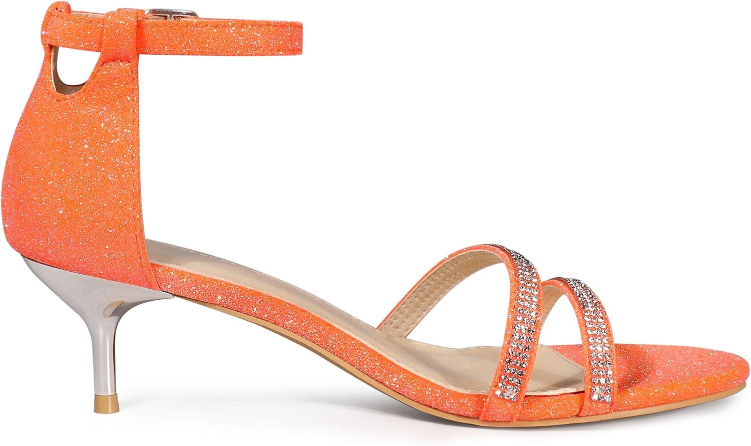 Allegra K Women’s Stiletto Kitten Heels Glitter Heel Sandals(Orange)