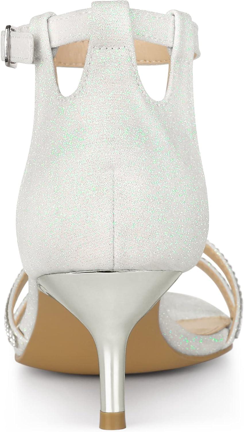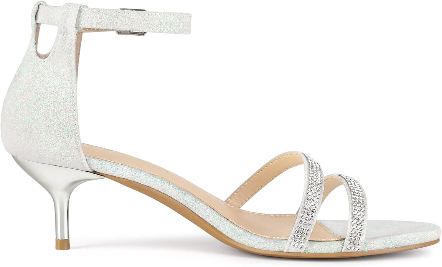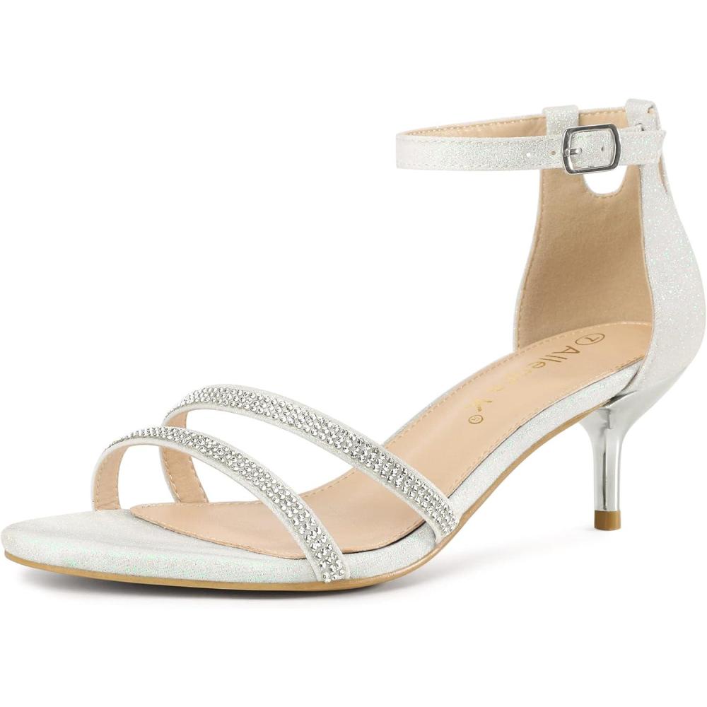 Allegra K Women’s Stiletto Kitten Heels Glitter Heel Sandals(White)