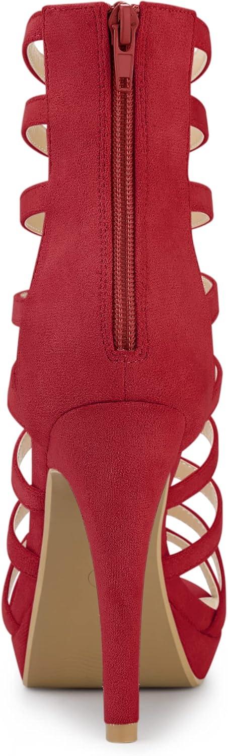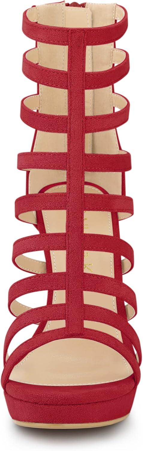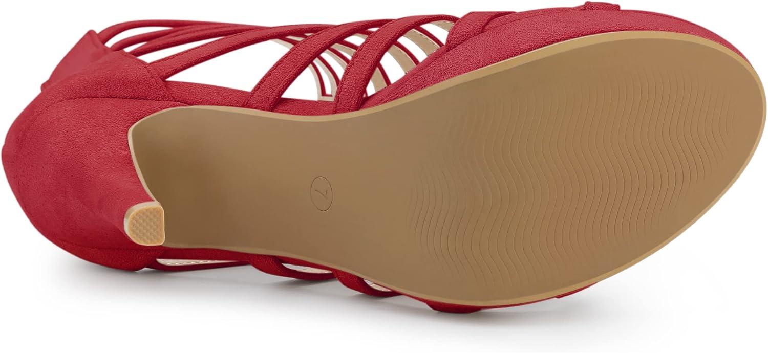 Allegra K Women’s Stiletto Platform Heels Strappy Gladiator Heel Sandals(Red)