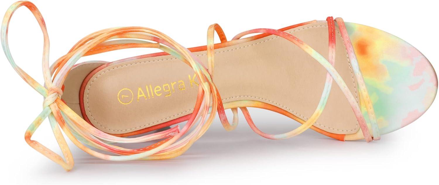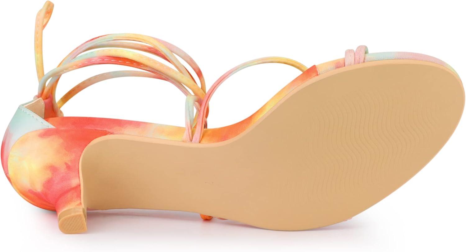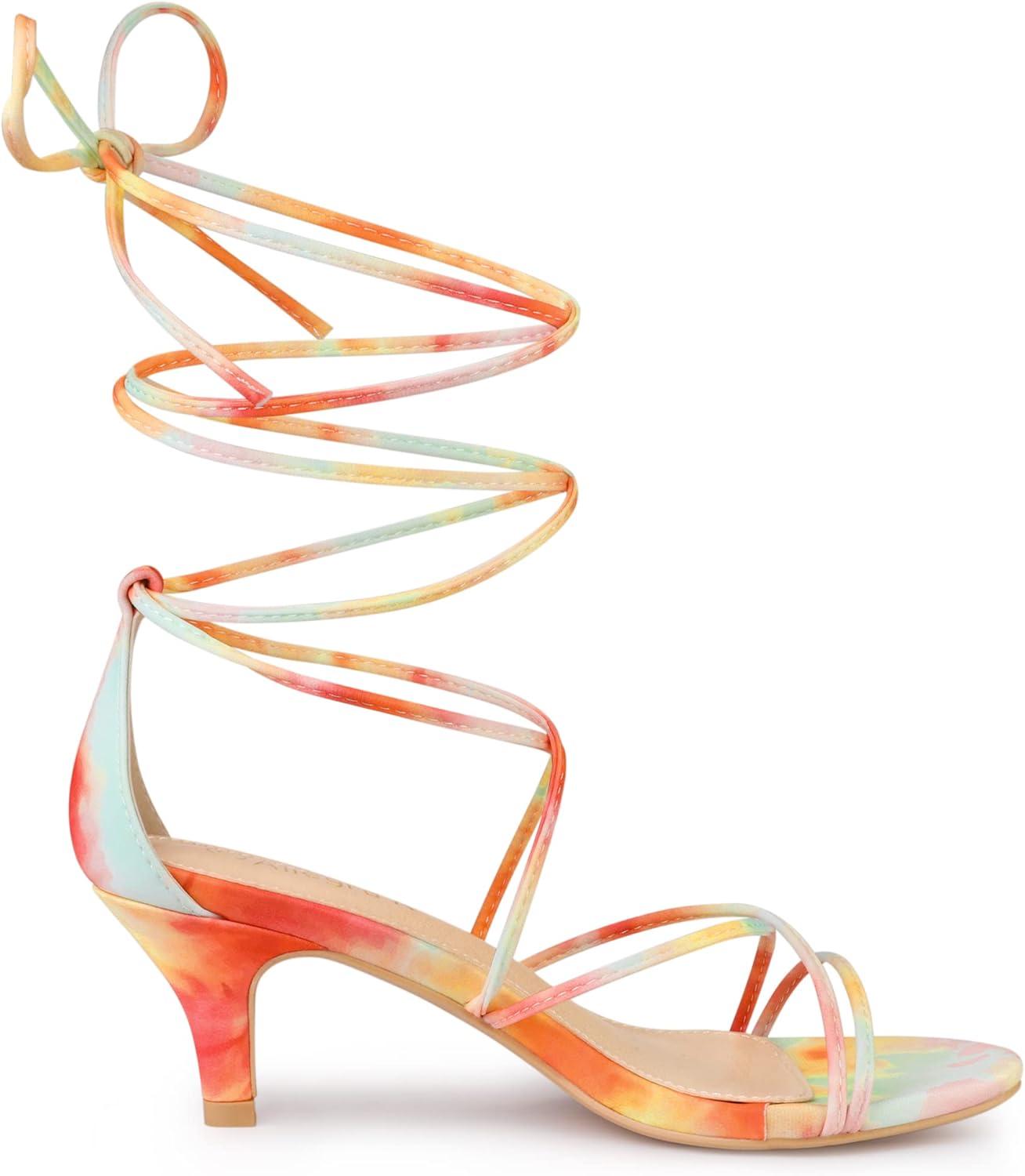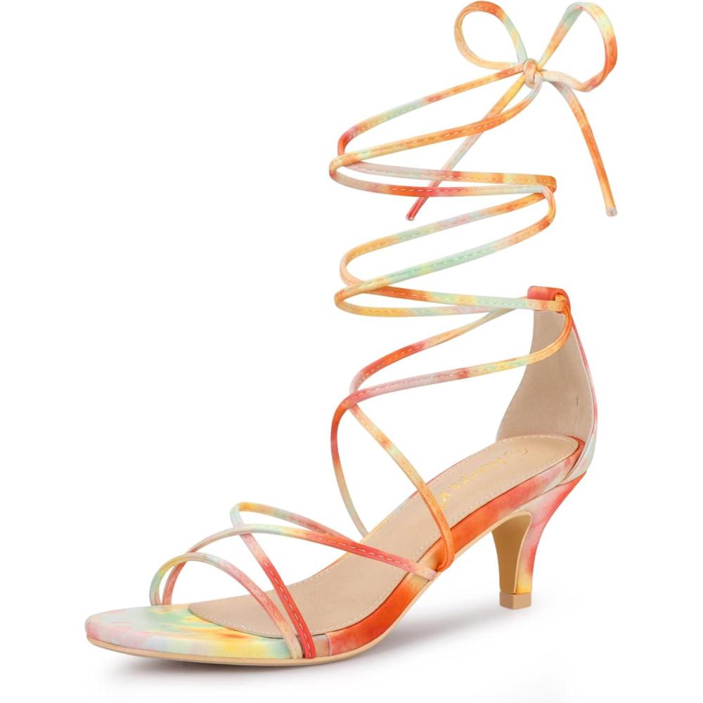 Allegra K Women’s Strappy Tie Dye Heels Lace Up Kitten Heel Sandals(Orange)