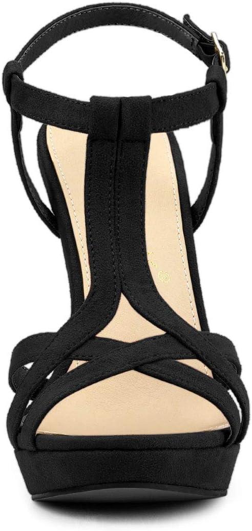 Allegra K Women’s T Strap Slingback Platform Stiletto Heel Sandals(Black)