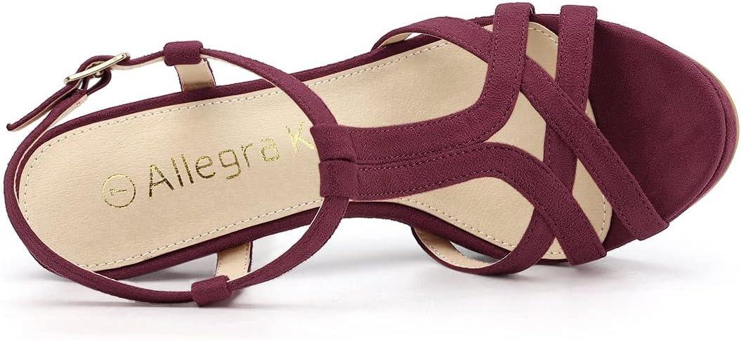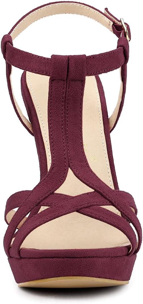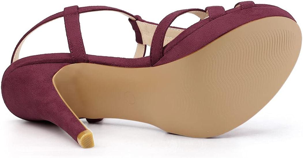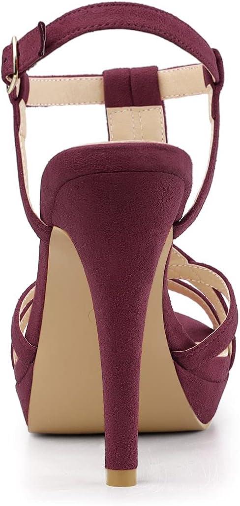 Allegra K Women’s T Strap Slingback Platform Stiletto Heel Sandals(Burgundy)