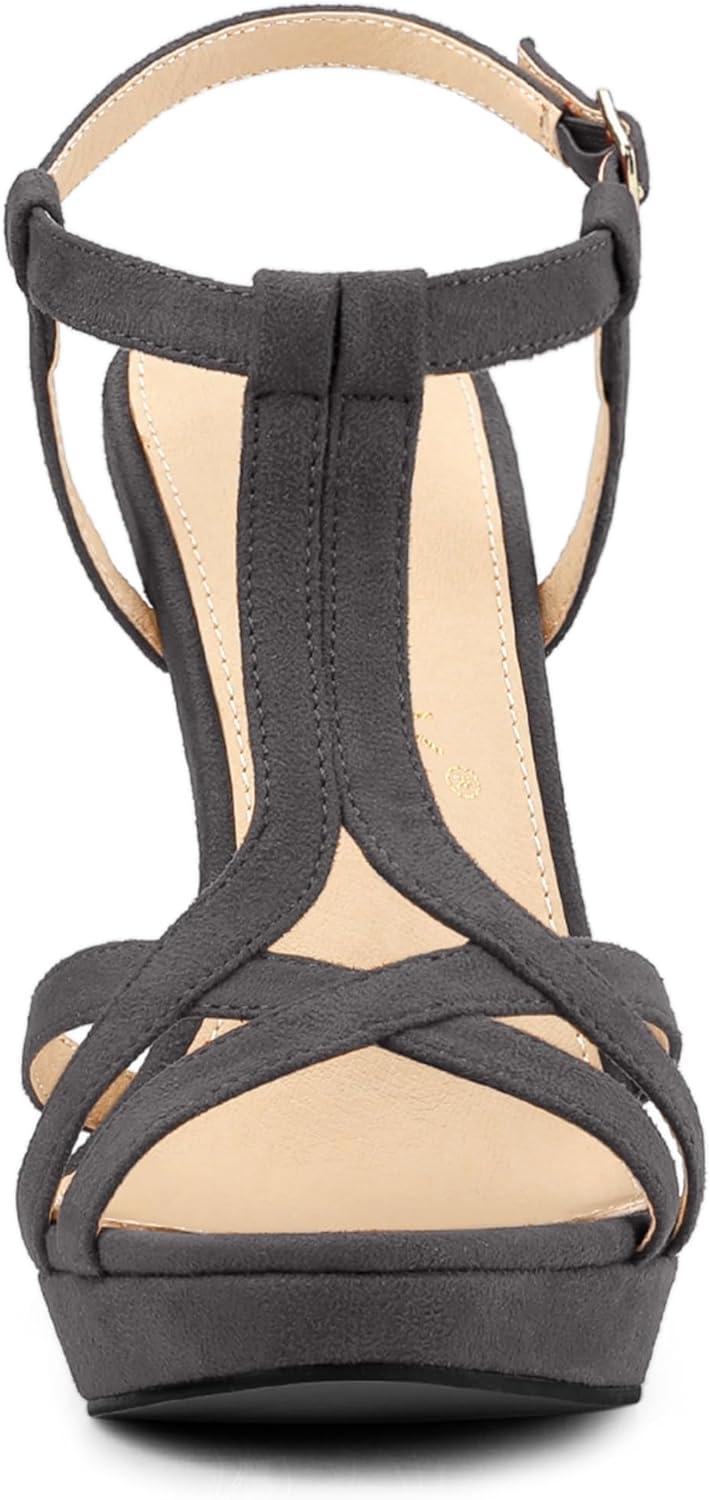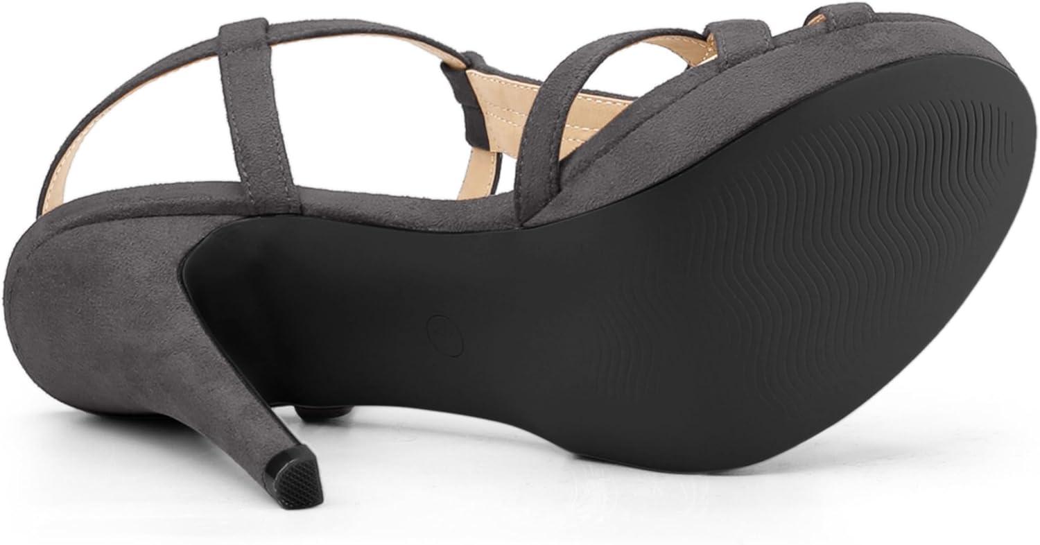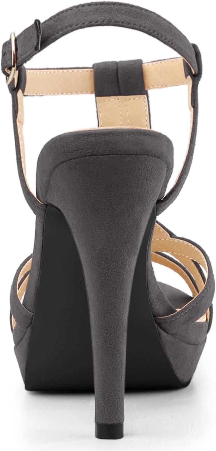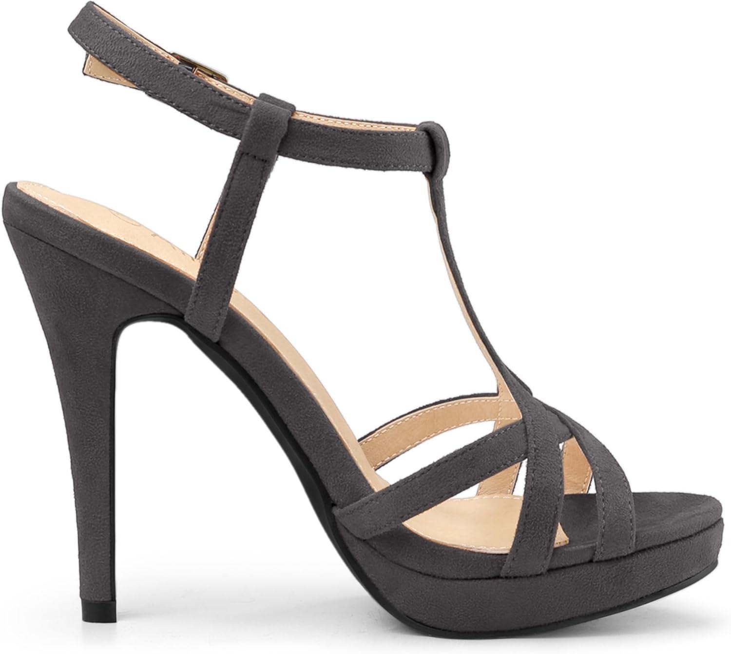 Allegra K Women’s T Strap Slingback Platform Stiletto Heel Sandals(Grey)