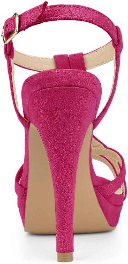 Allegra K Women’s T Strap Slingback Platform Stiletto Heel Sandals(Hot Pink)